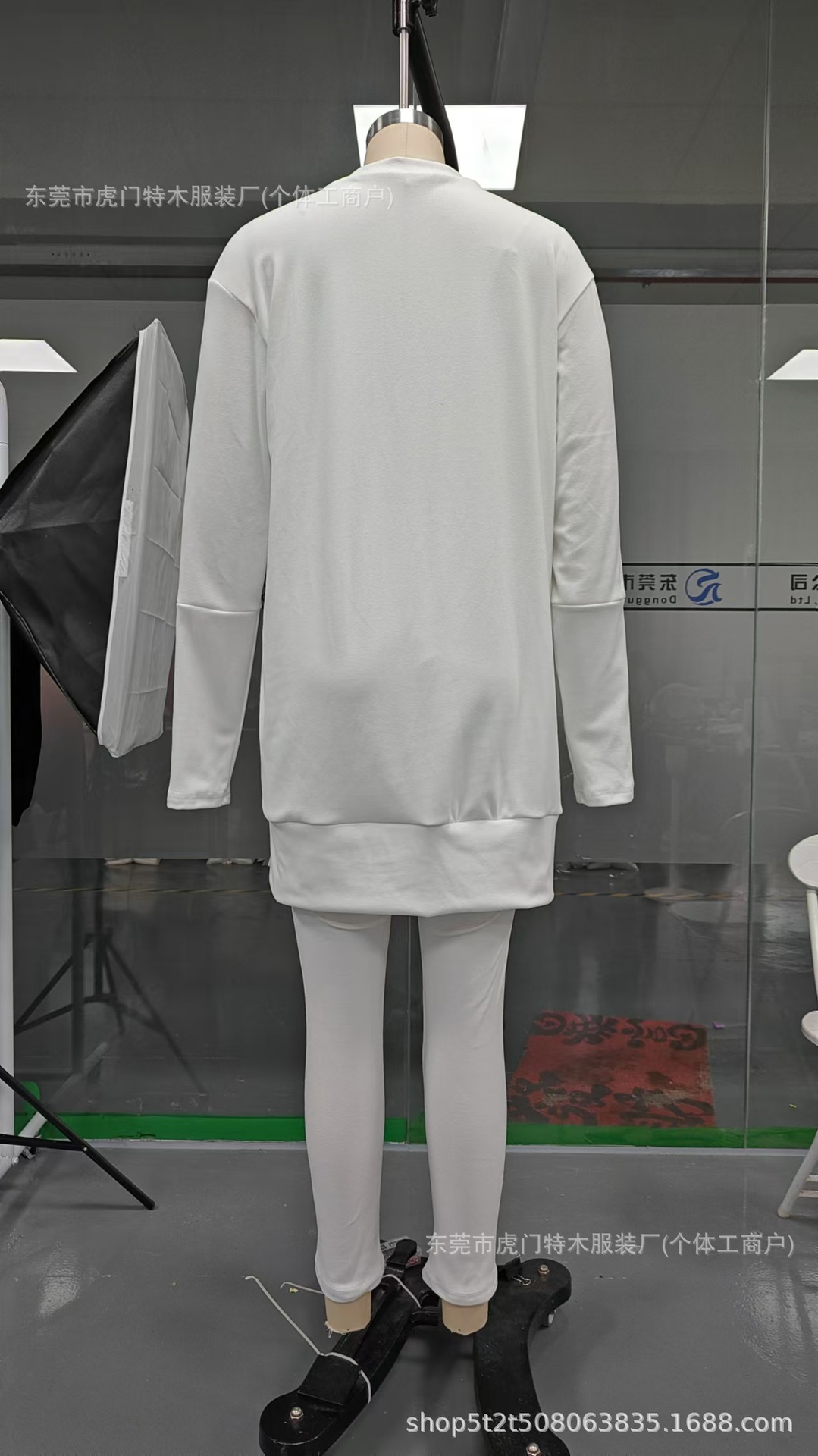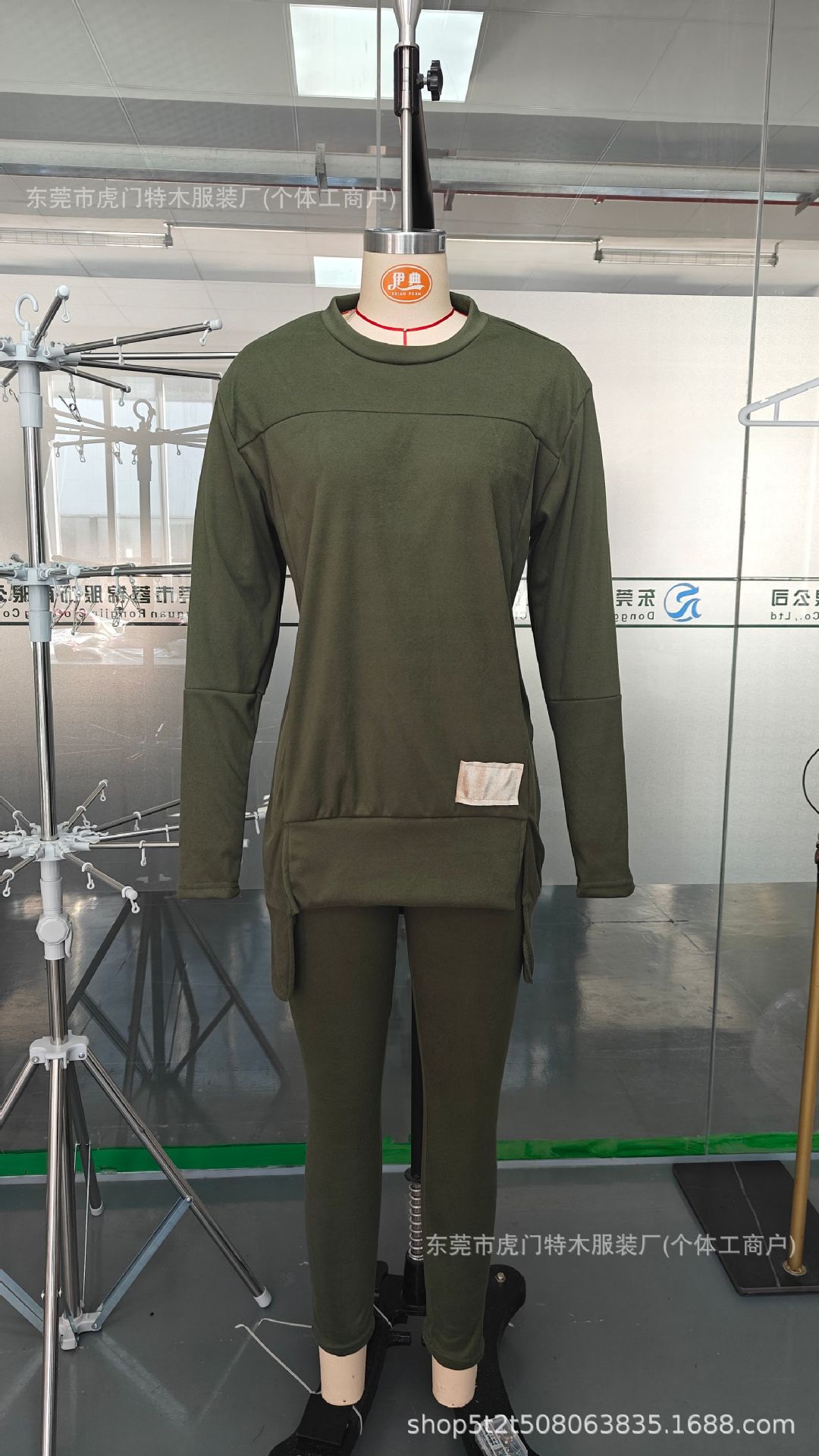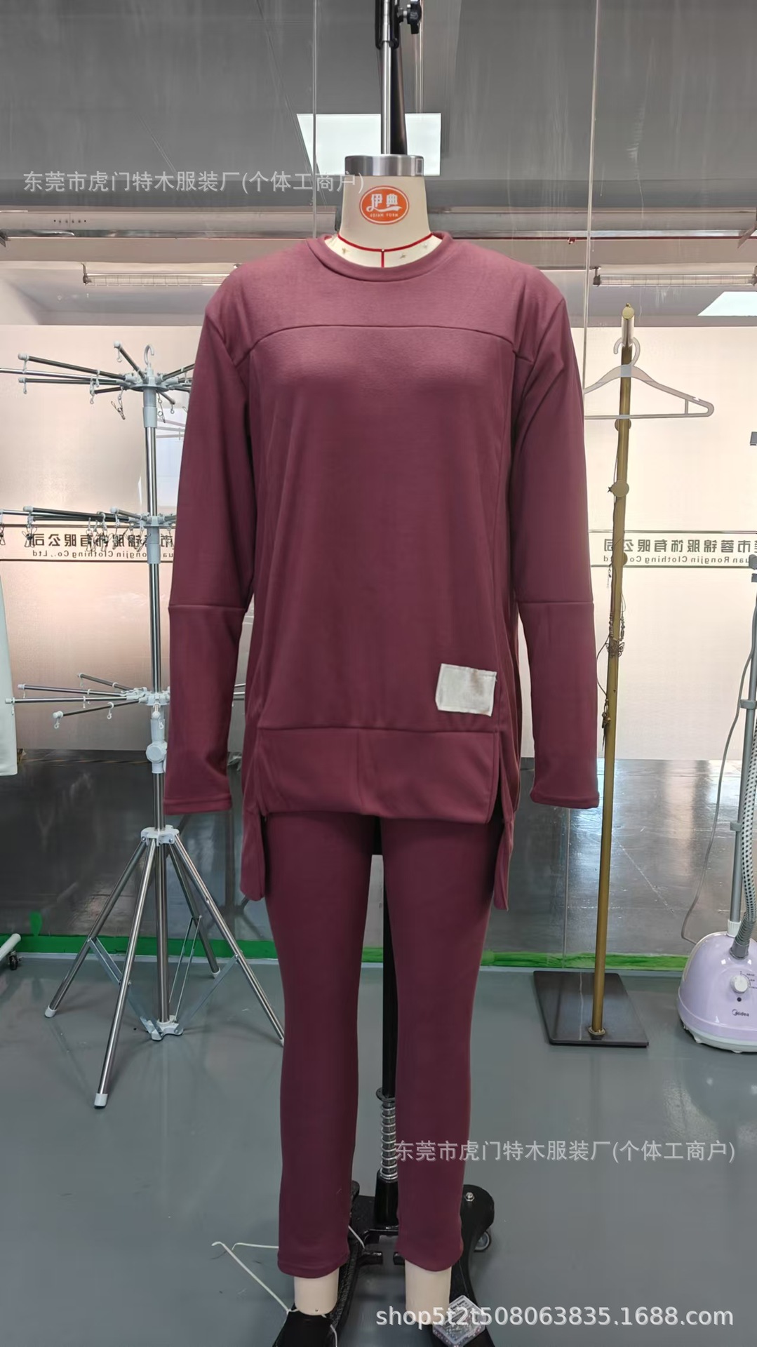 2024 Amazon Independent Station, трансграничные осенне-зимние популярные женские топы с разрезом и длинными рукавами, повседневный однотонный костюм с круглым вырезом
