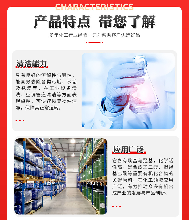 Гидроксиуксусная кислота производитель гликолат гликолевая кислота твердая 70% жидкая 99% промышленный очиститель гидроксиуксусная кислота