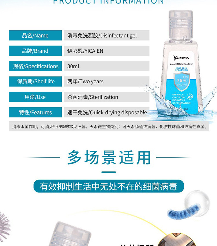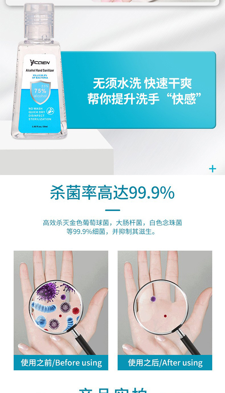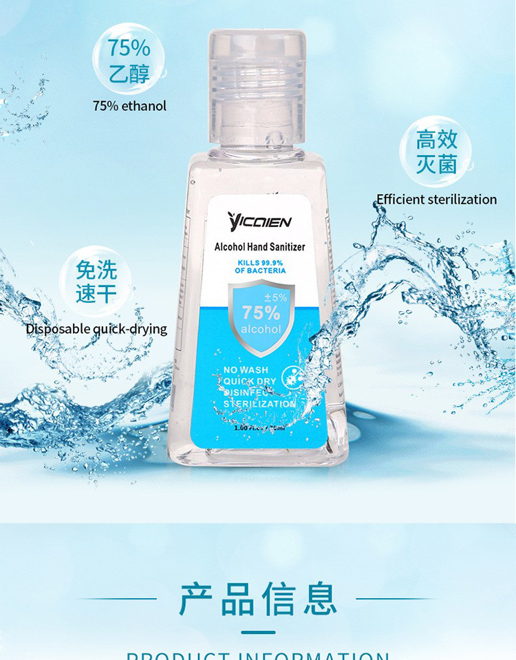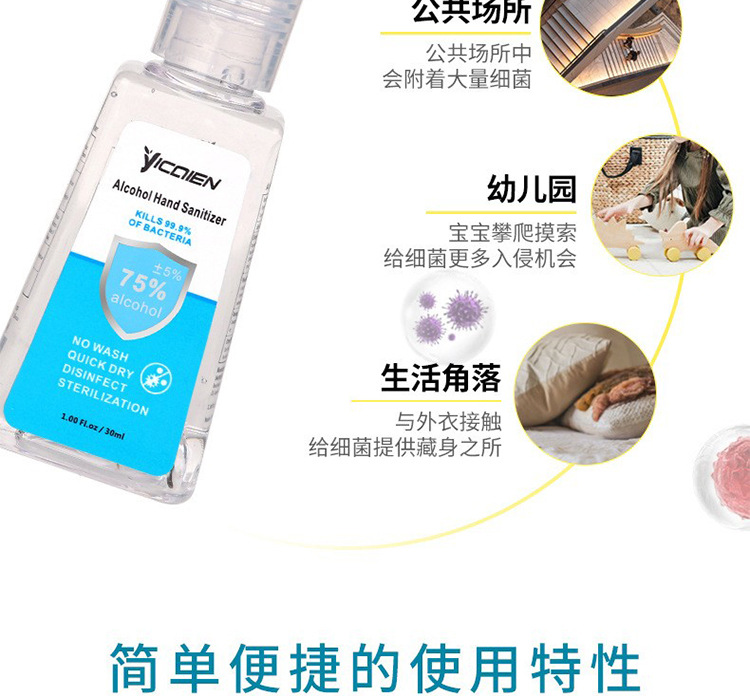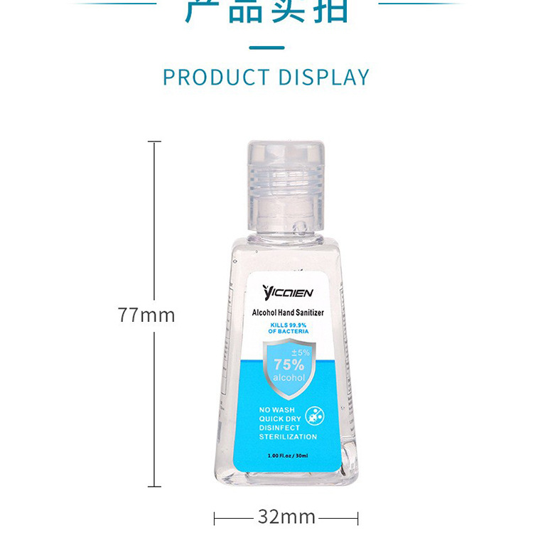 30 мл дезинфицирующий гель для рук без мытья, 75% спирта, антибактериальный, 10Z, детский FDA, экспортная экспортная версия, производитель OEM