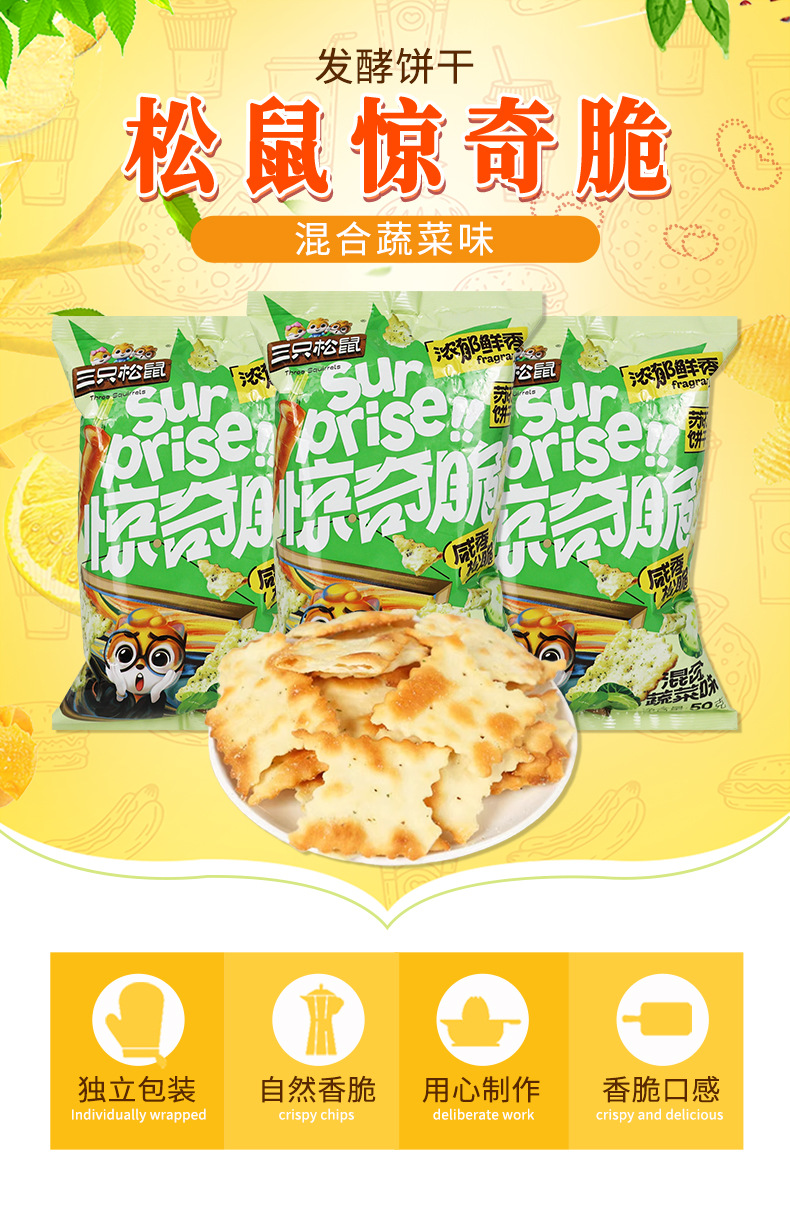 Хрустящие содовые крекеры «Три белки-сюрприз» 50 г, соленый вкус, смешанные овощные крекеры, бесплатная доставка