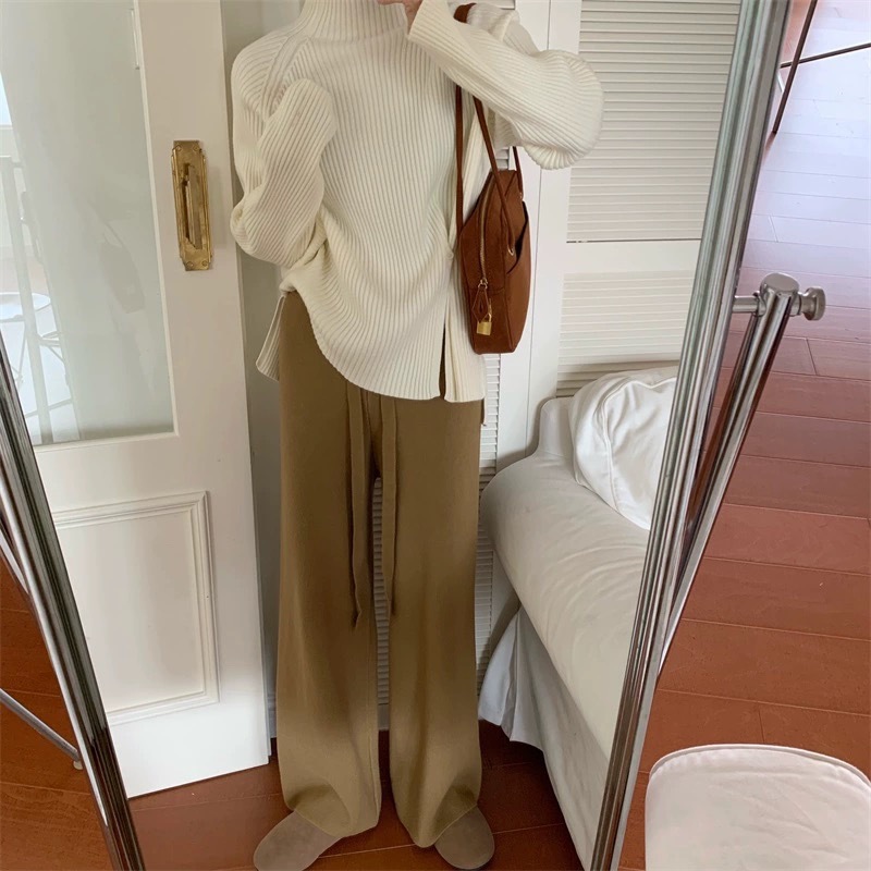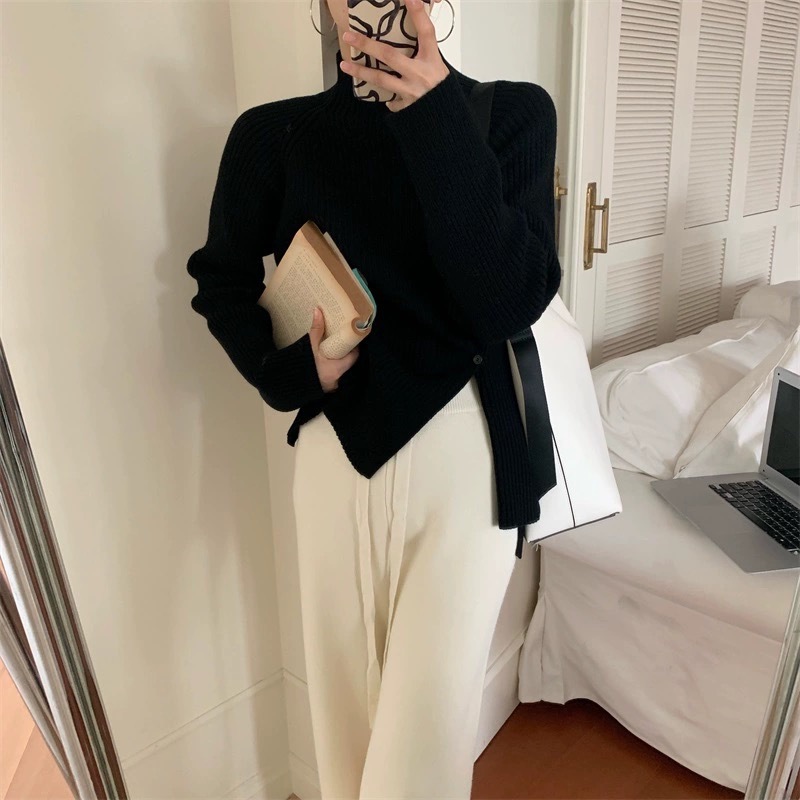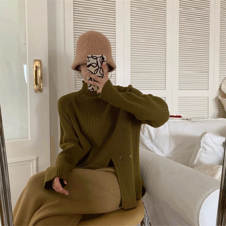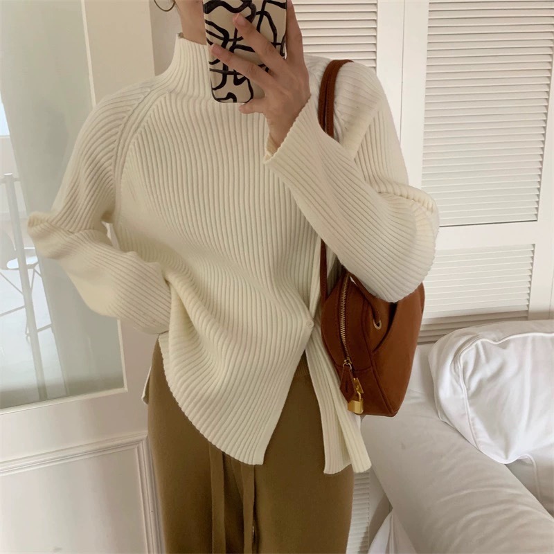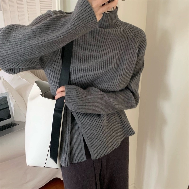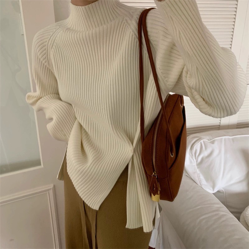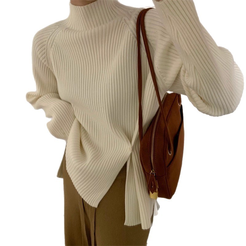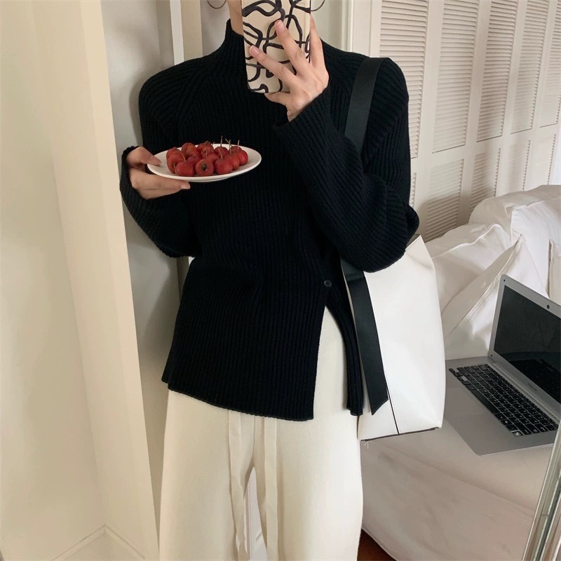 2025 новый женский свитер с высоким воротником, уникальным дизайном и разрезом для выхода в свет.