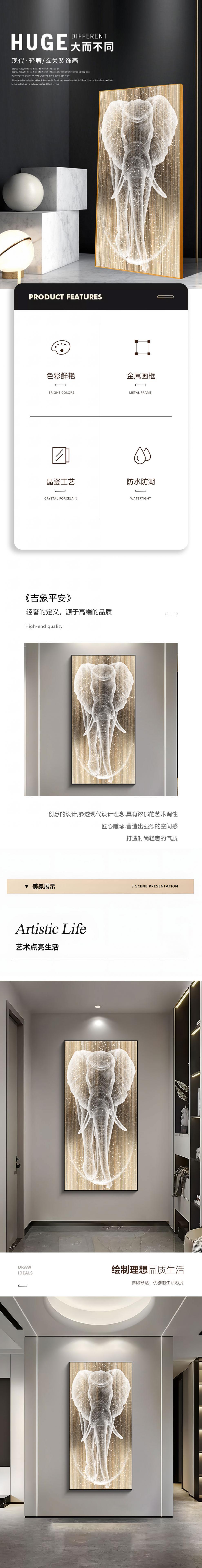 Современная легкая роскошная хрустальная фарфоровая картина для прихожей, прохода, коридора, декоративная картина для гостиной, элитная фреска со слоном 193