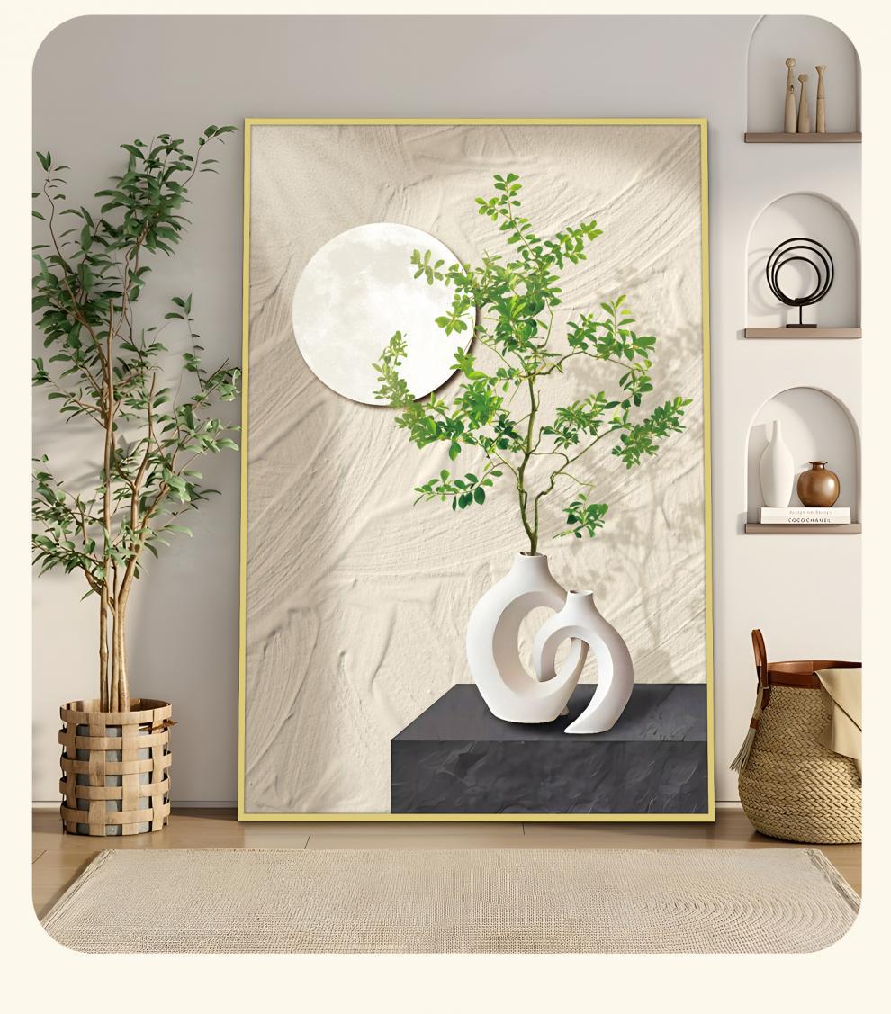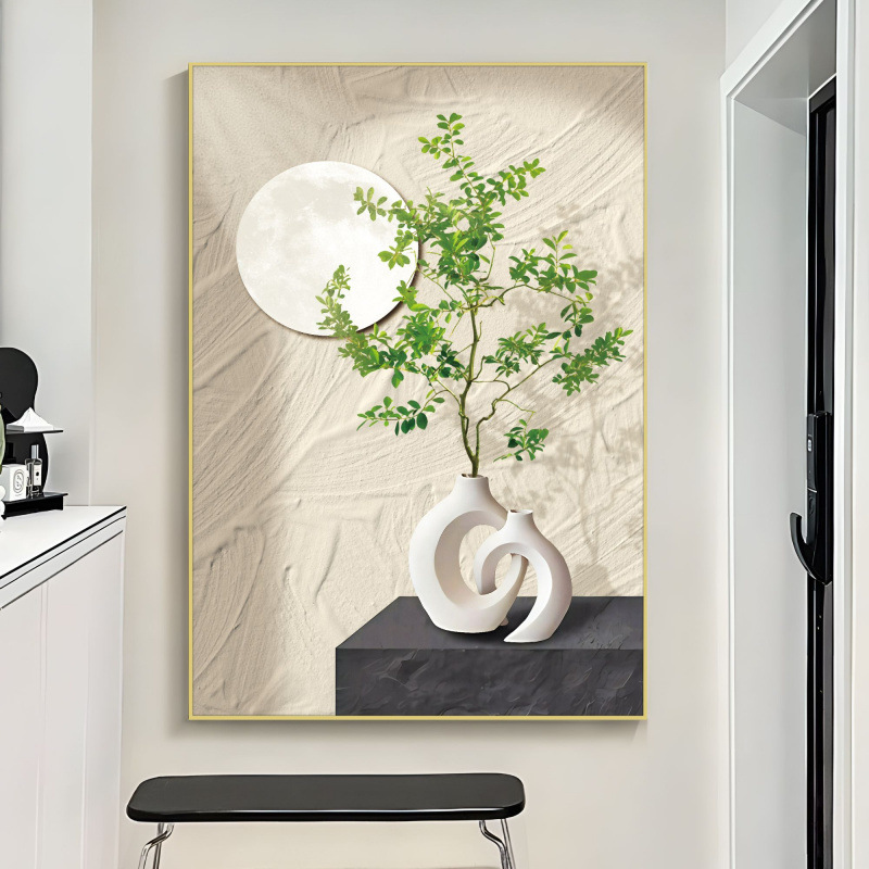Декоративная картина в скандинавском кремовом стиле, картина от пола до потолка в конце коридора, зеленые растения, подвесная картина в гостиной, ваза 80120
