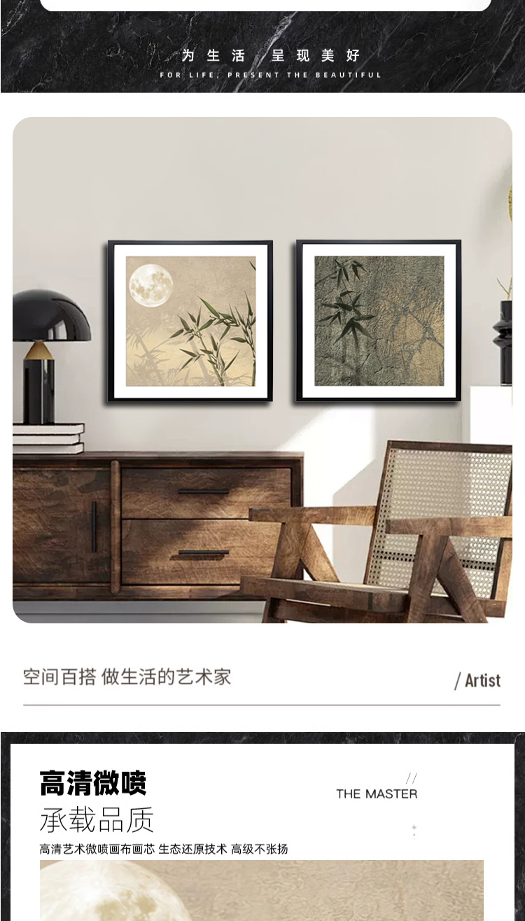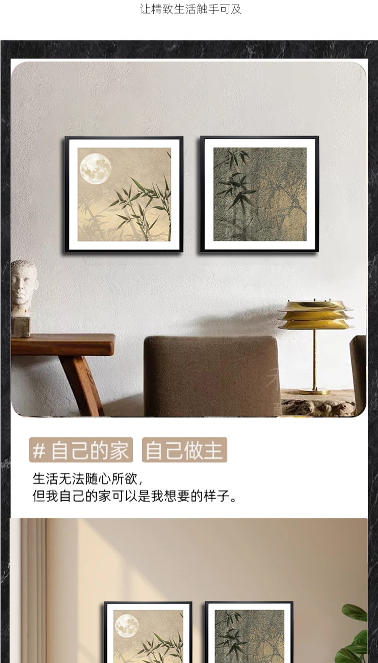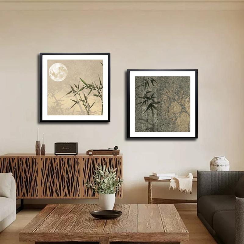 Современная китайская двухпанельная картина, постепенно растущая, декоративная картина на фоне гостиной, деревянная рамка, фреска для спальни, бамбуковые листья 4040