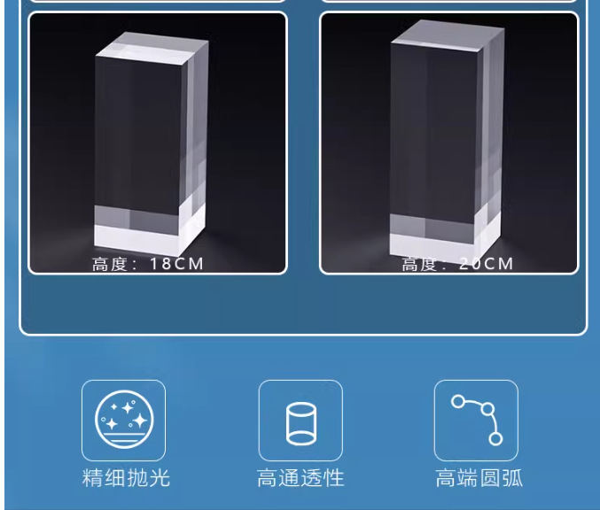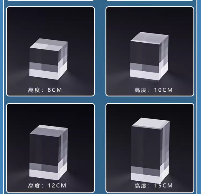 Прозрачное квадратное основание; матовые квадраты; Прозрачный квадратный стержень; матовый квадратный стержень; Прозрачный цилиндр; матовый цилиндр