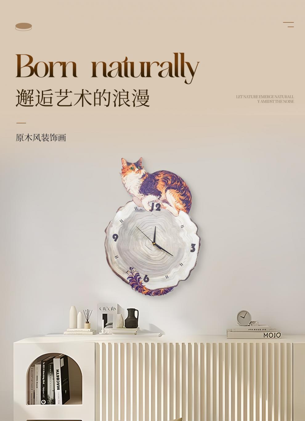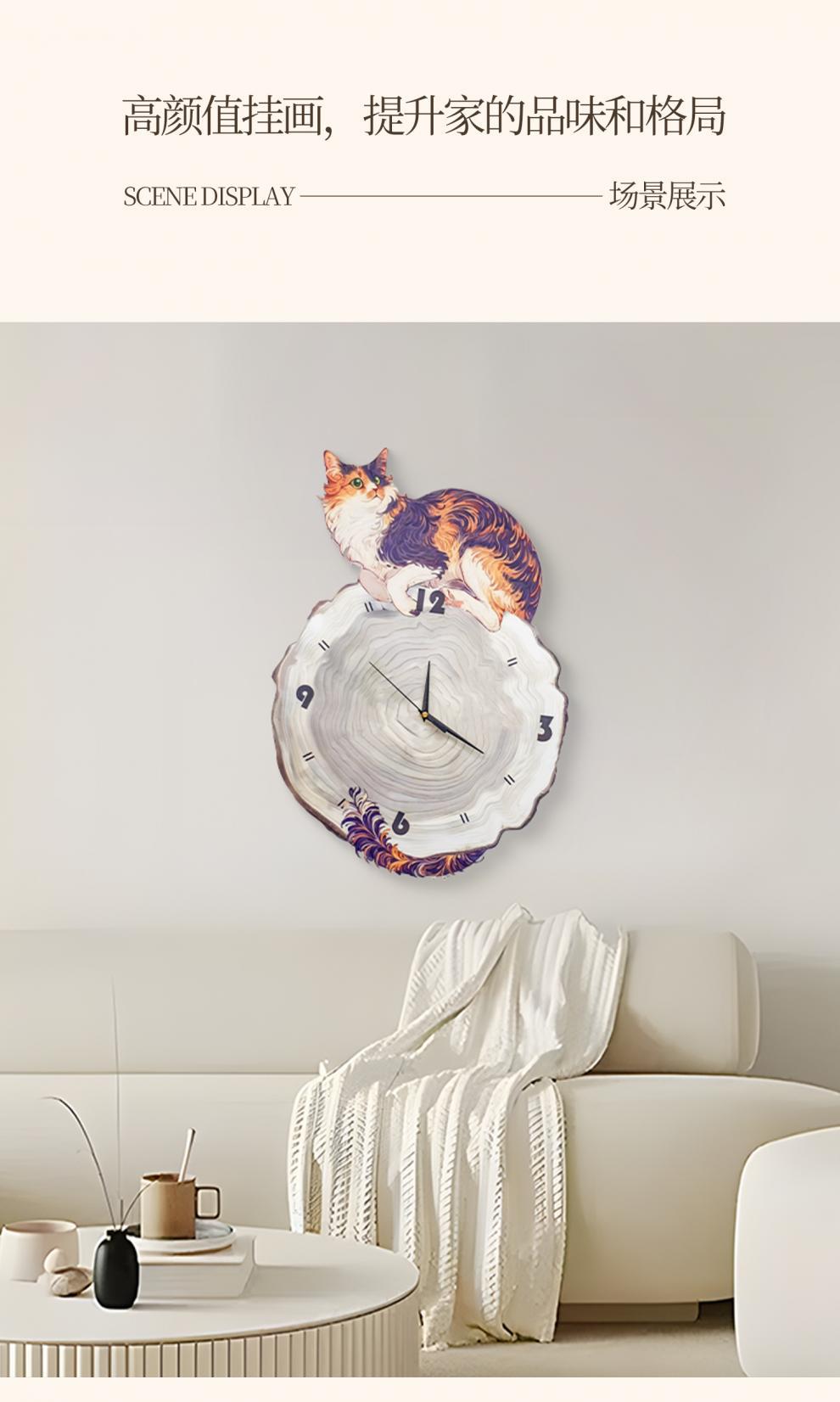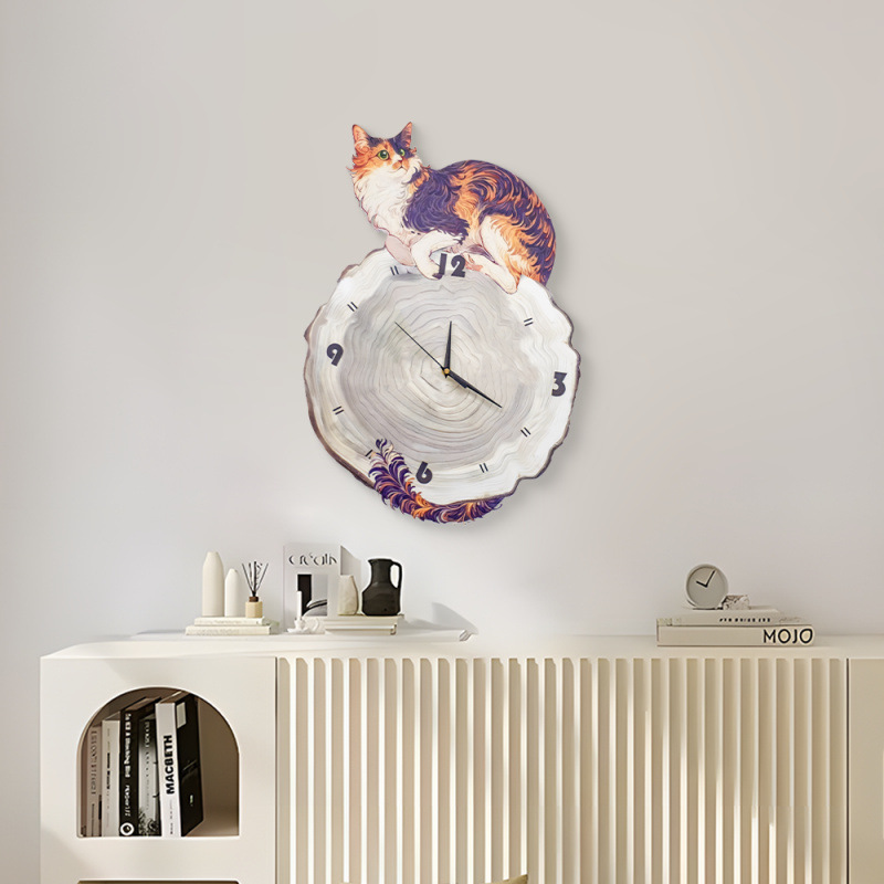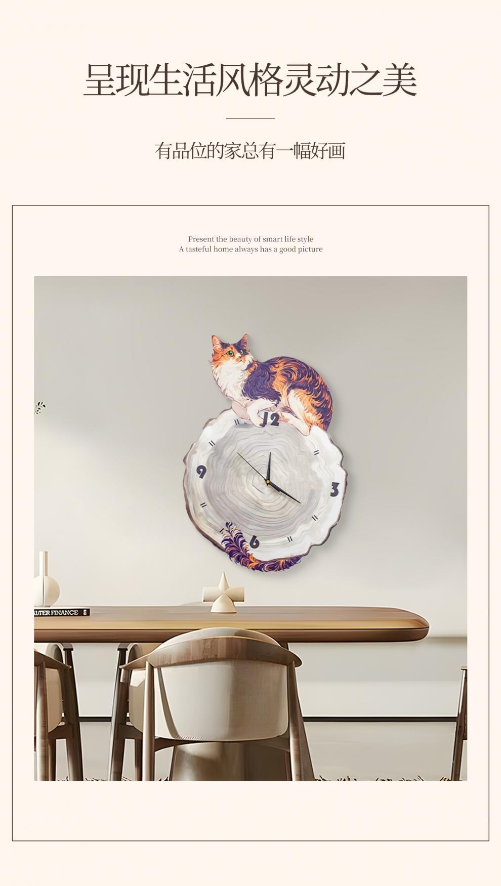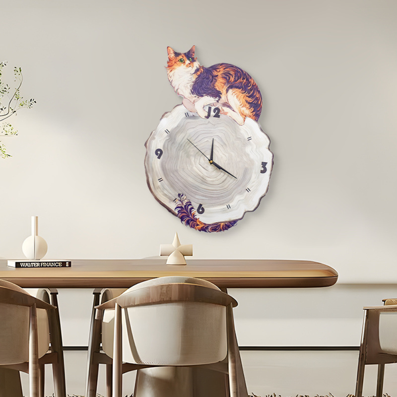 Настенные часы 2024 года, скандинавский стиль, доступная роскошь, элегантные часы с картиной в стиле ваби-саби, милый кот, часы для ресторана, 4060