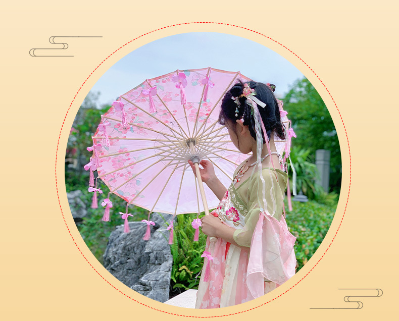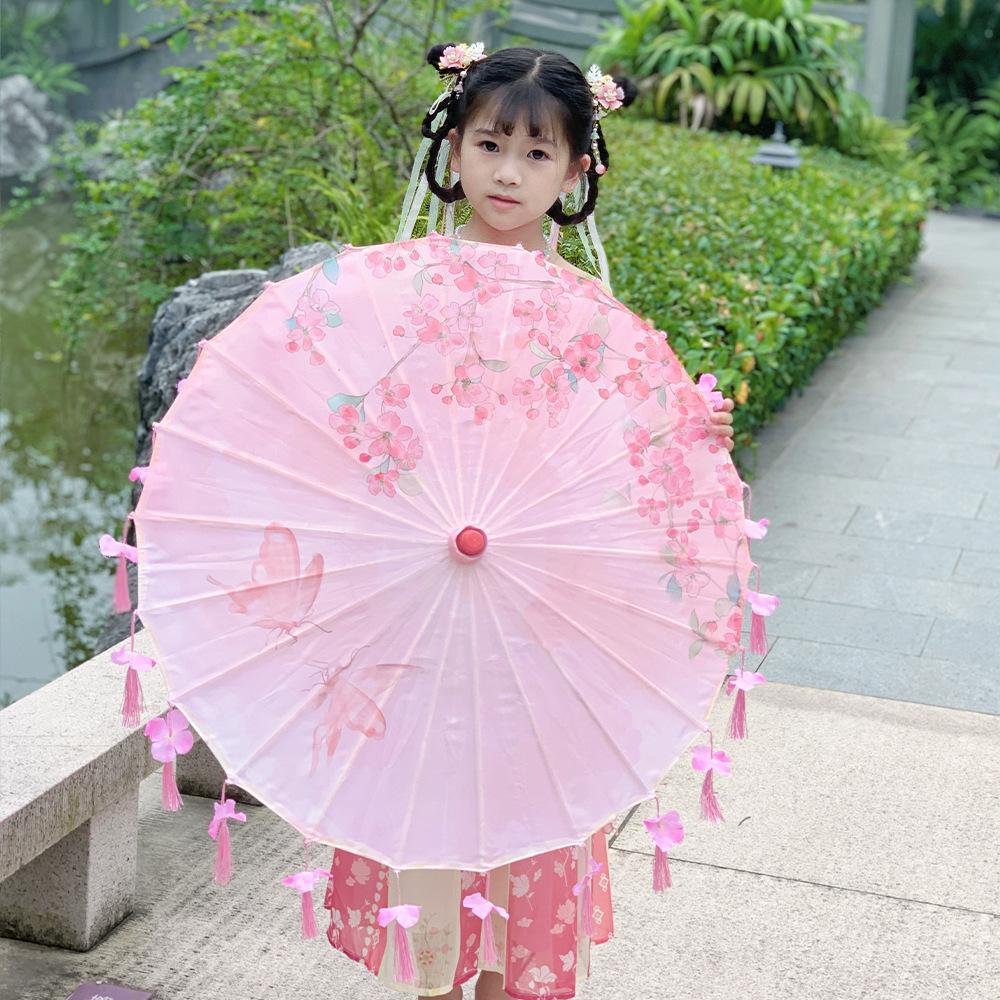 Маленький детский зонтик с кисточками для танцевальных выступлений девочек, реквизит Hanfu, декоративный зонтик для фотографий, Cheongsam Hanfu Qingbai Le.
