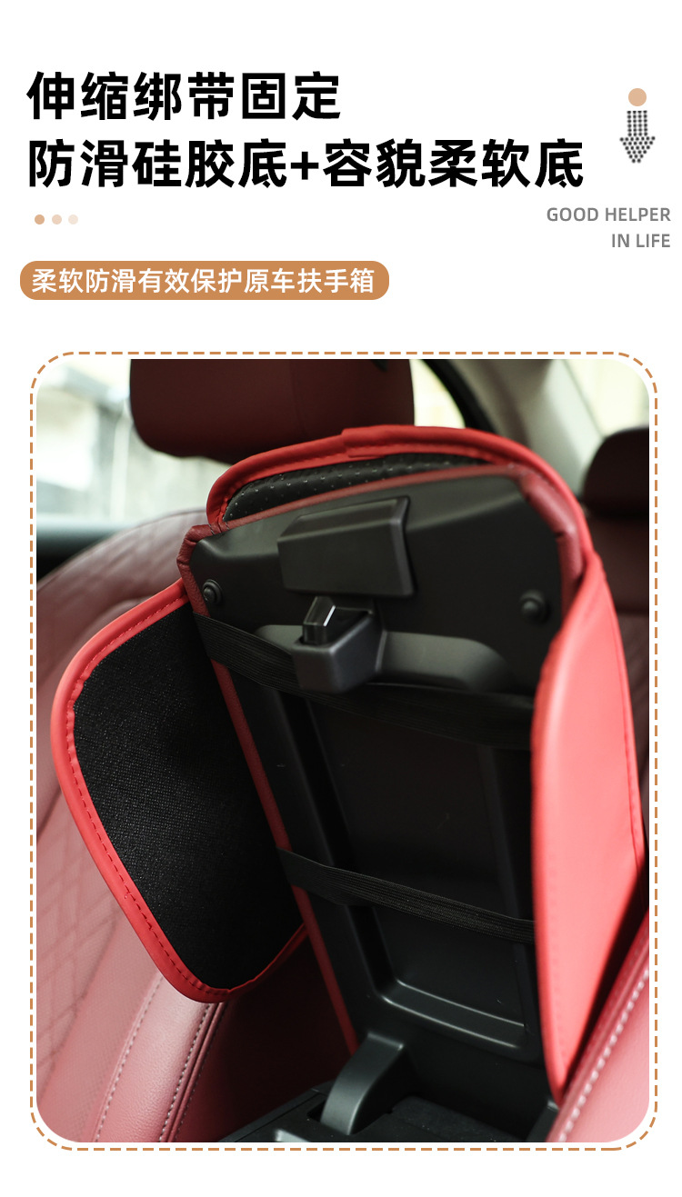 Многофункциональный универсальный органайзер для подлокотника автомобиля: коврик, сумка для хранения, держатель для салфеток, подушка для увеличения высоты центрального подлокотника.