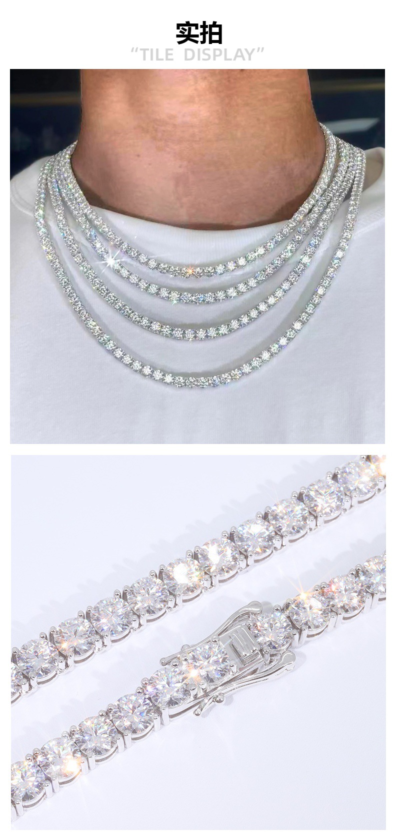 Серебряная цепочка S925 с инкрустацией из муассанита 5 мм, цвет D, чистота VVS, в европейском и американском стиле, универсальное украшение в стиле хип-хоп для мужчин и женщин.