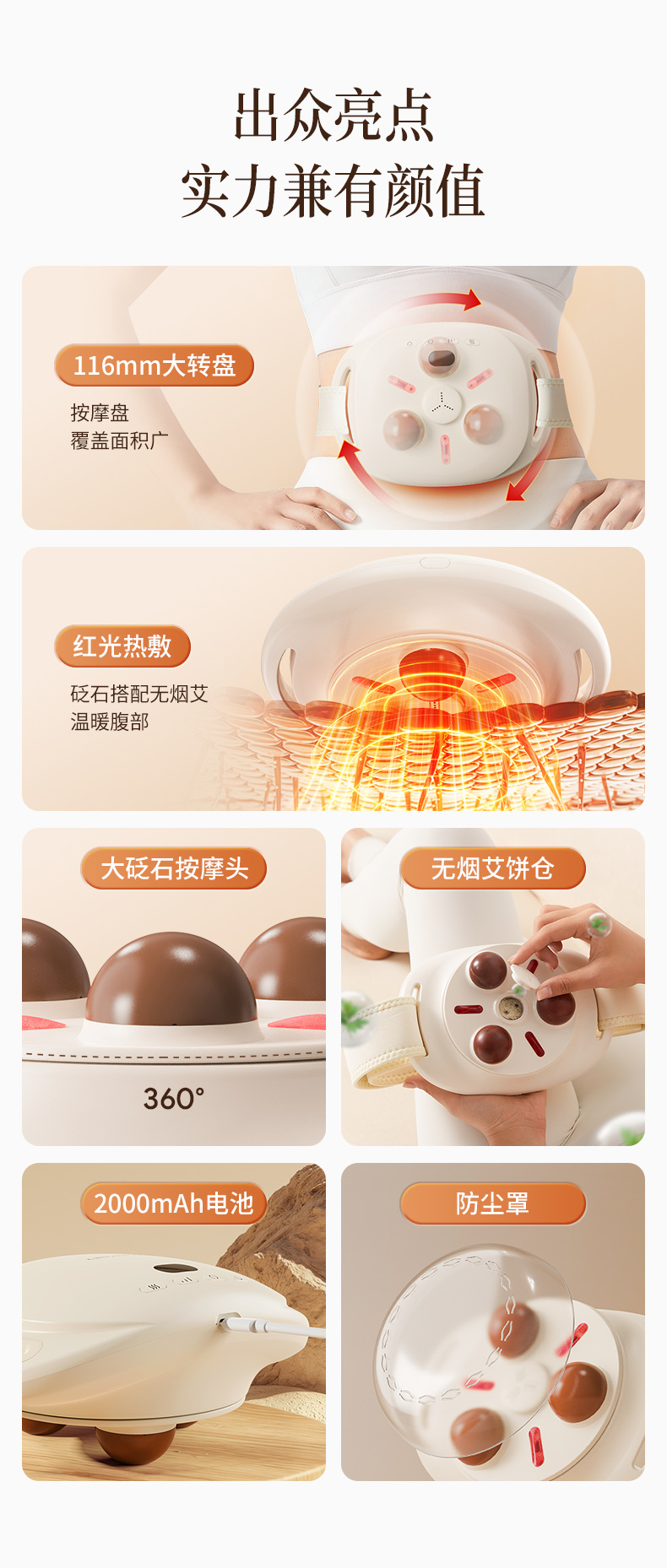 Массажер для живота для детей, устройство для моксотерапии с мелкими камнями, моксотерапия для желудка и кишечника, полностью автоматический нагревательный массажер для живота.