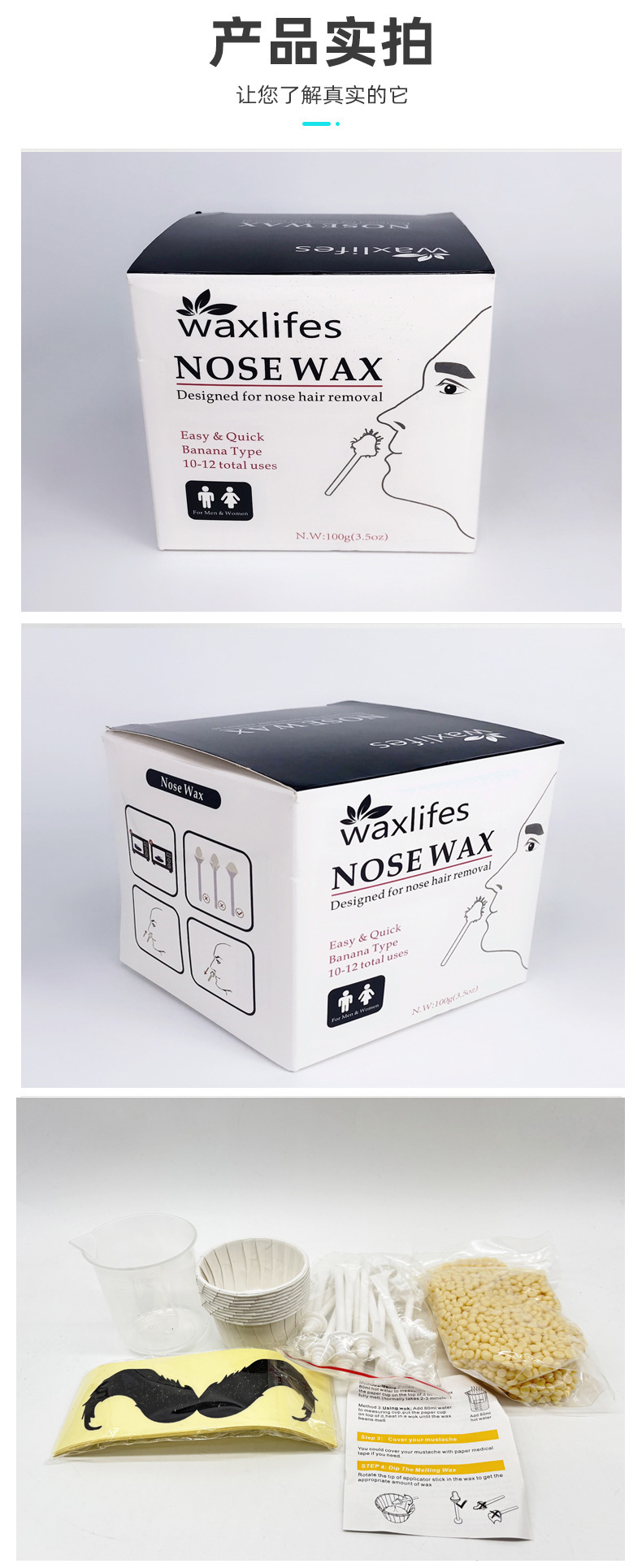 Набор воска для удаления волос в носу, набор восковых бобов для удаления волос, набор для носа, твердый воск, одноразовый набор для нанесения