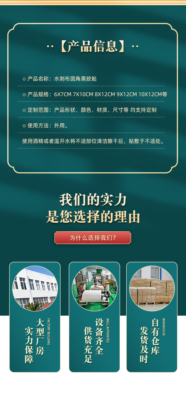 Черный пластырь спанлейс, пластырь для шейного отдела позвоночника, пластырь для плеча, пластырь для поясницы, пластырь для колена, пластырь для суставов
