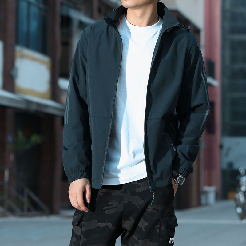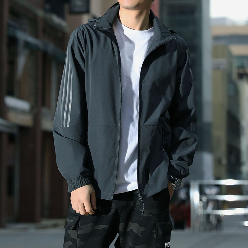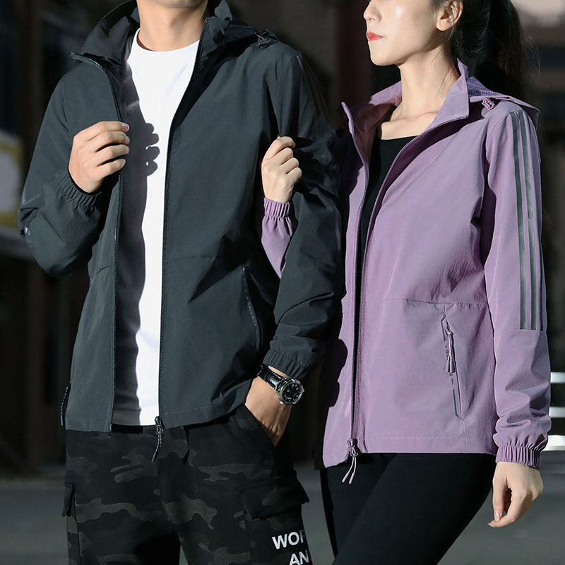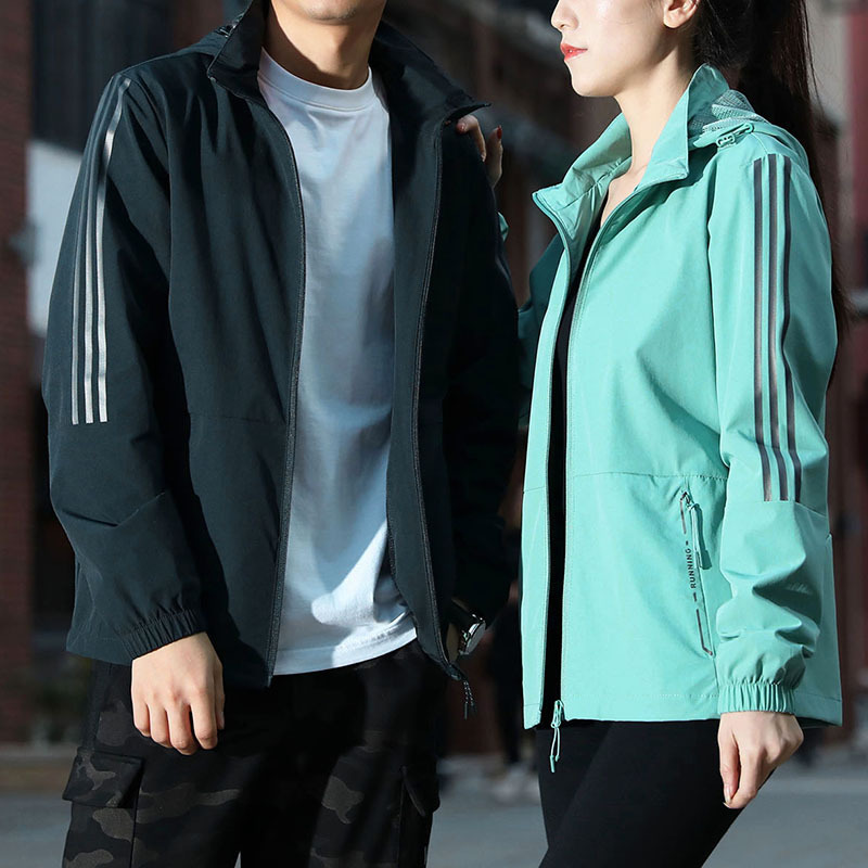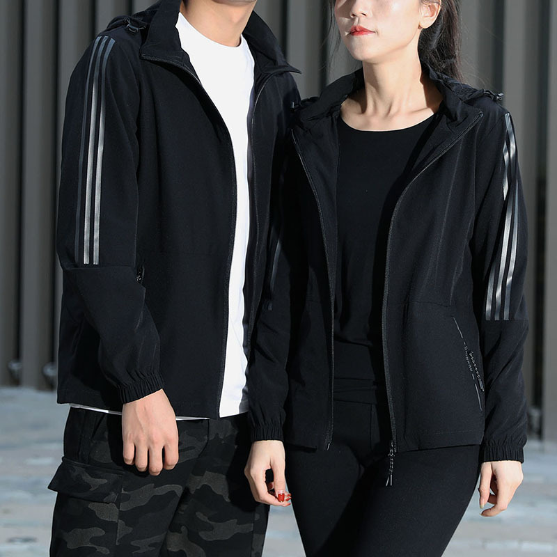 Оптовая продажа, весенне-осенняя эластичная спортивная куртка, мужской кардиган с капюшоном, топы для пар, мужские и женские полосатые групповые покупки, тонкая ветровка