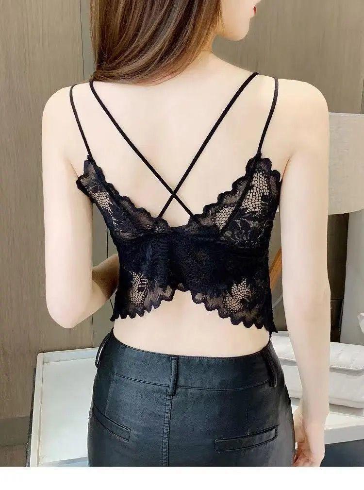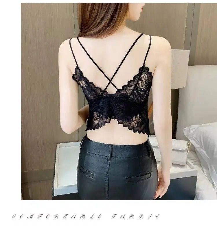 Красивый бюстгальтер-топ с кружевом, удобное и дышащее нижнее белье, приятное для кожи, со съемными вкладышами для груди.