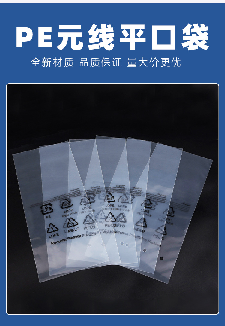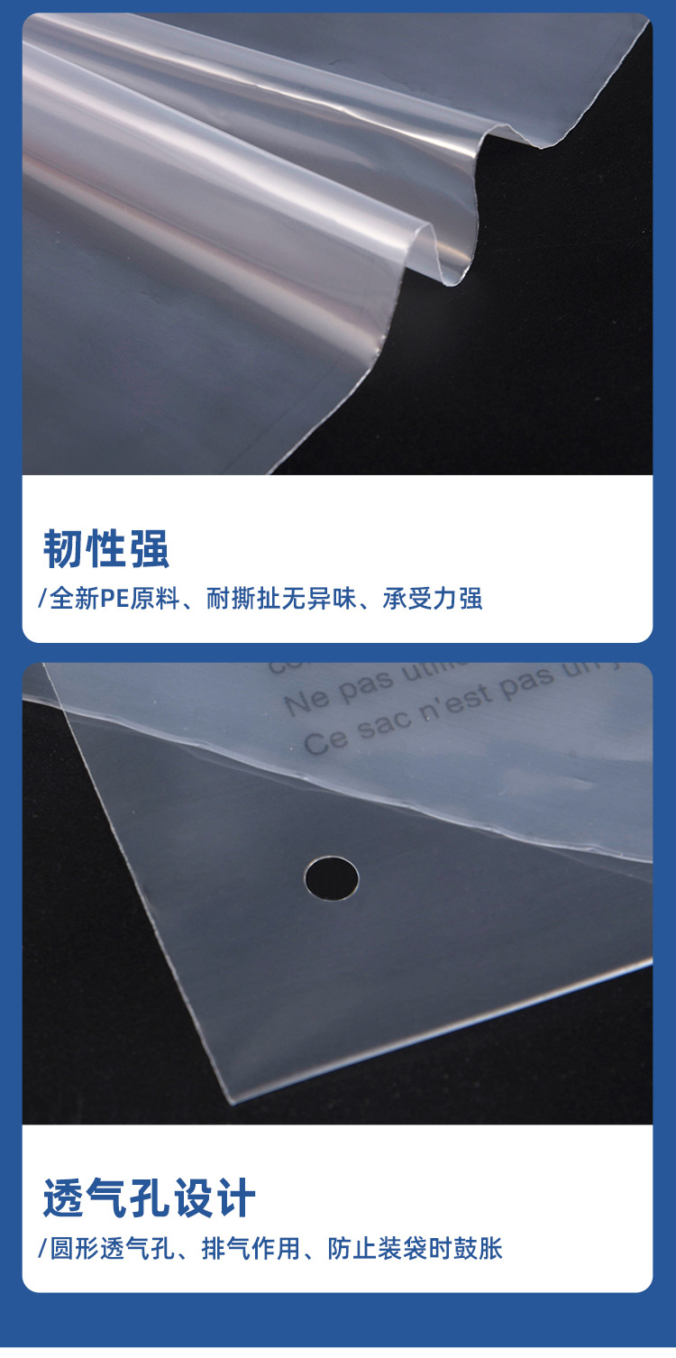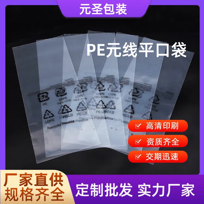 Индивидуальный полиэтиленовый пакет с плоским ртом Yuanxian Line, печать предупреждения, защита окружающей среды, перфорированный полиэтиленовый пакет, прозрачный упаковочный пакет, незапечатанный пакет