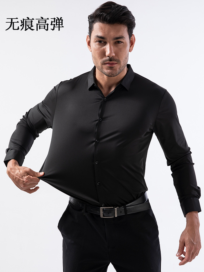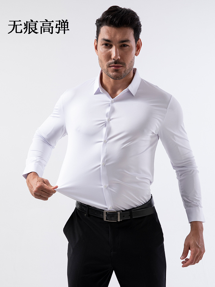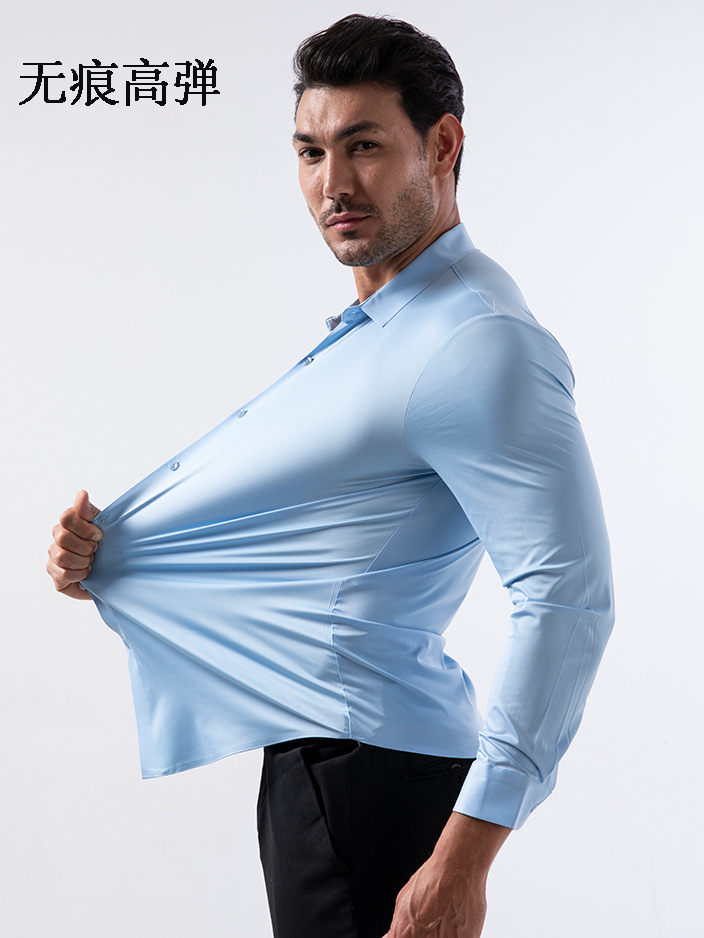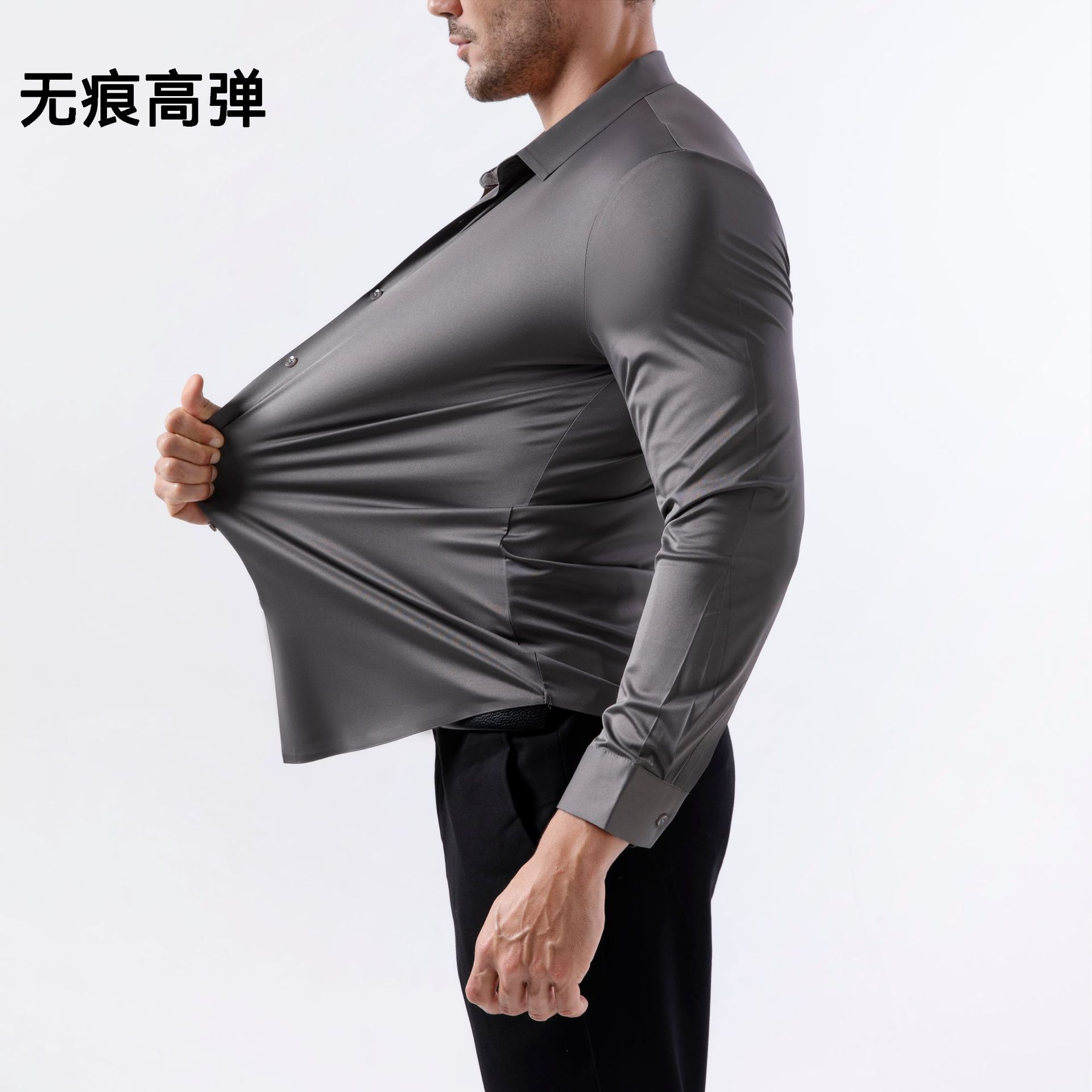 [Без следов с высокой бомбой] Трансграничная четырехсторонняя эластичная рубашка мужская рубашка без горячего морщин