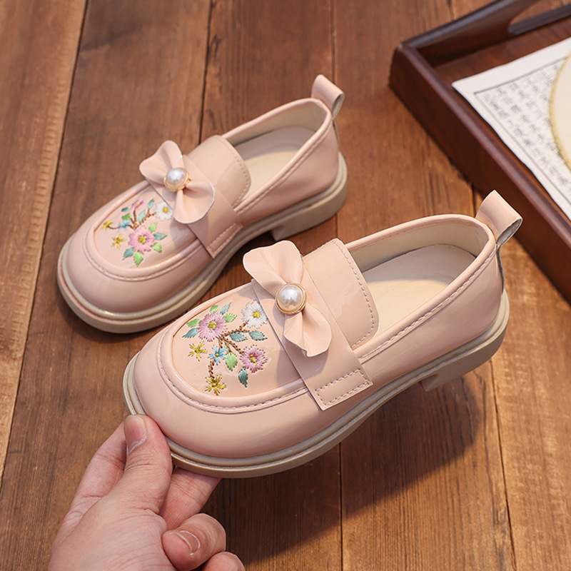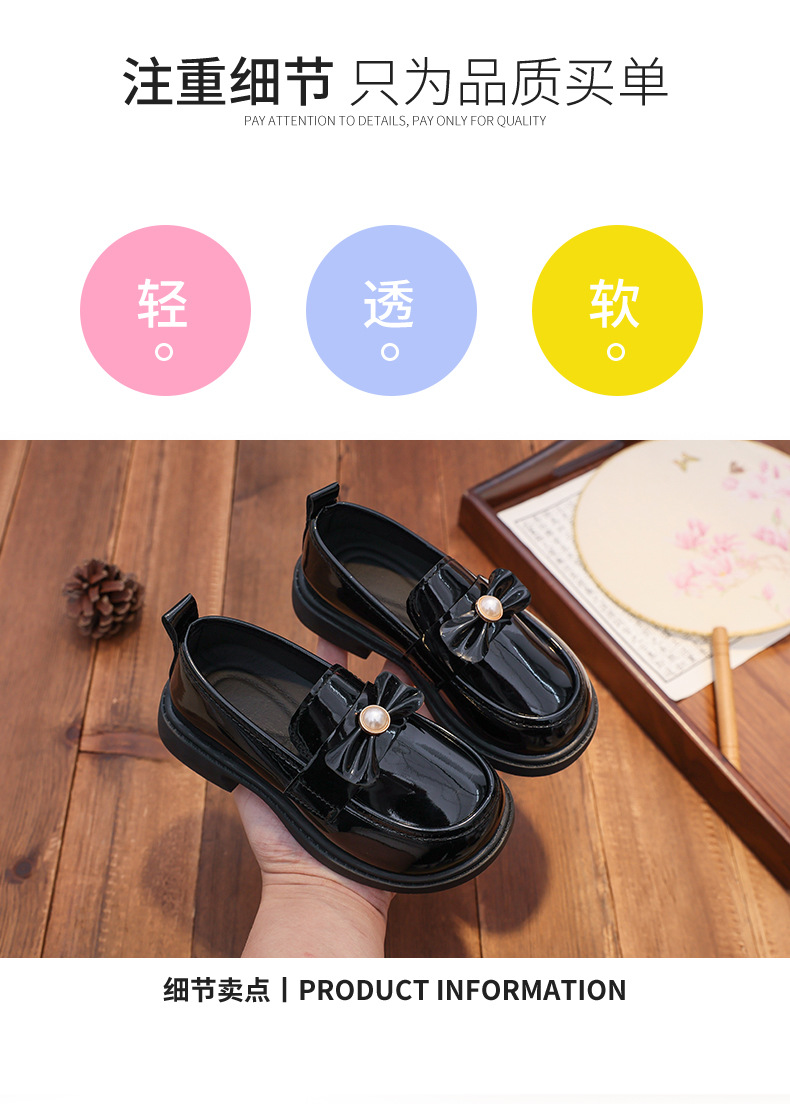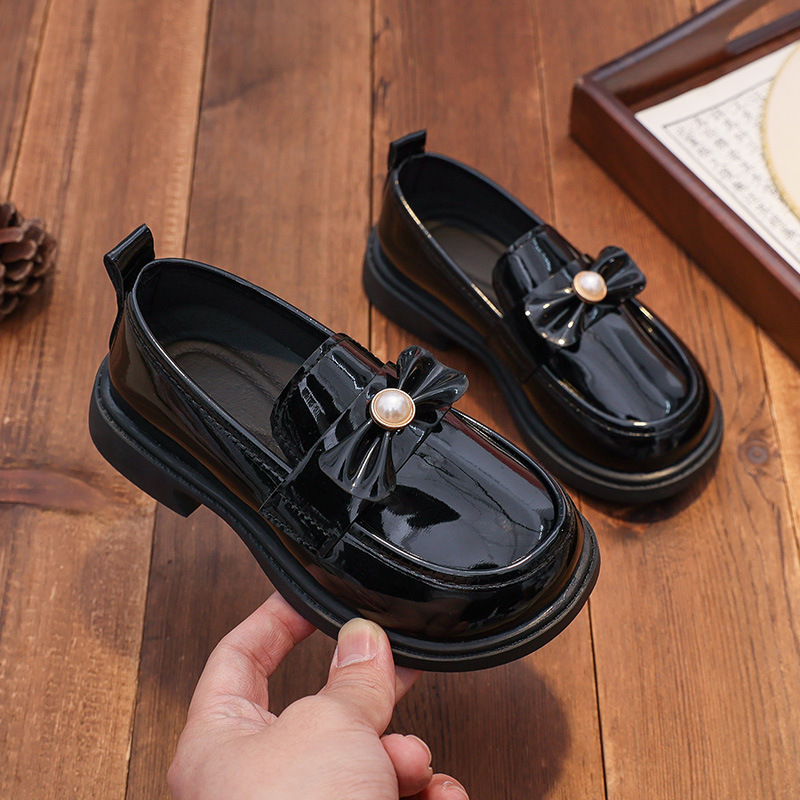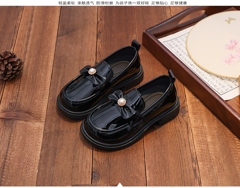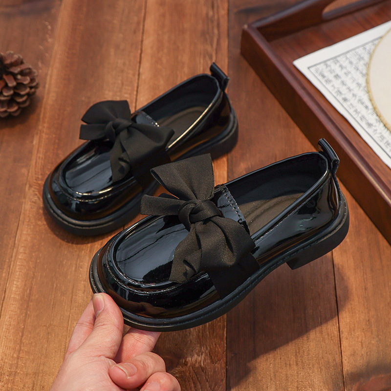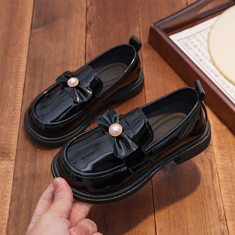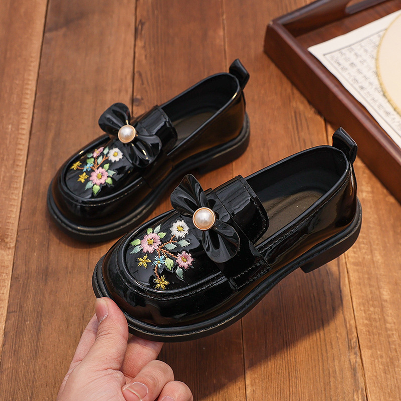 Черные кожаные туфли для девочек, детские туфли для выступлений, черно-белые студенческие туфли, торжественные школьные туфли для девочек с цветами, мягкая подошва принцессы.
