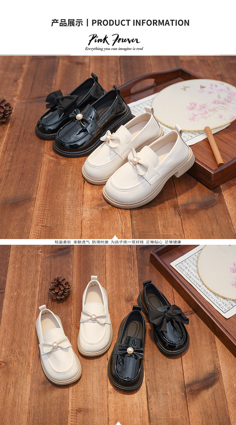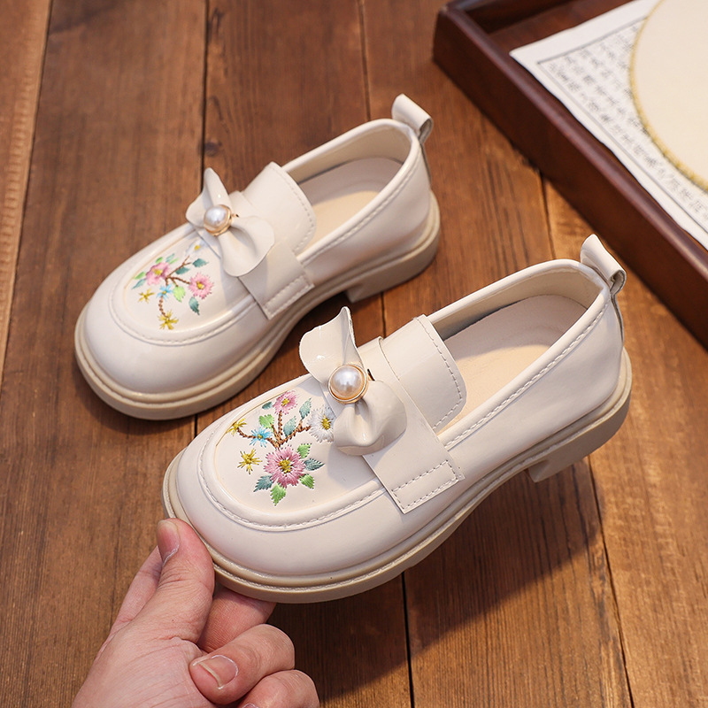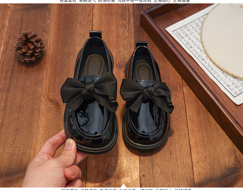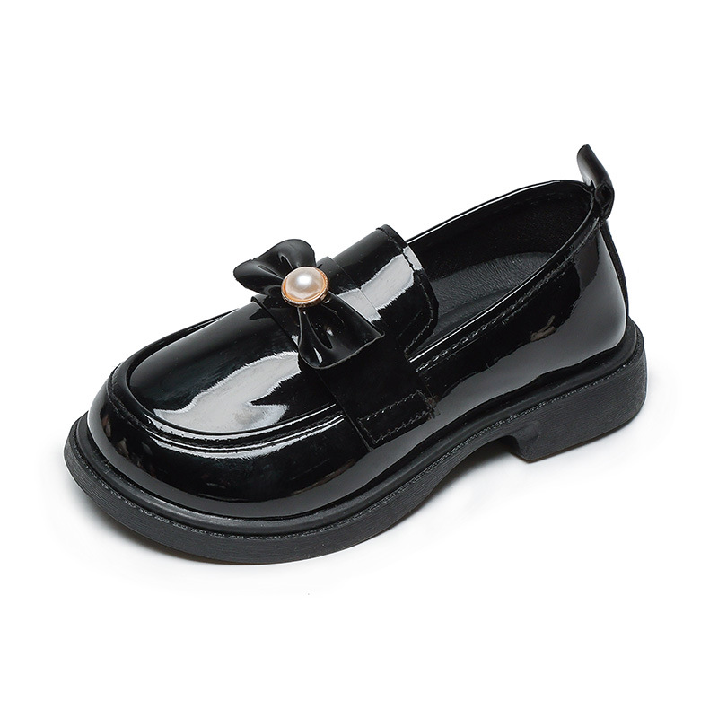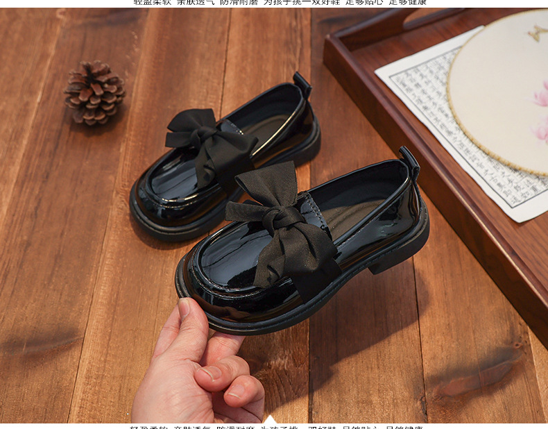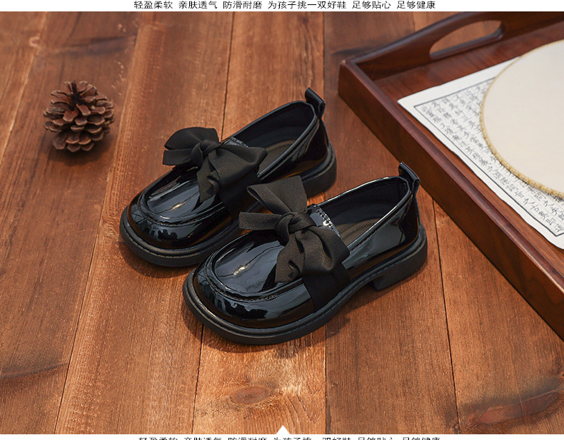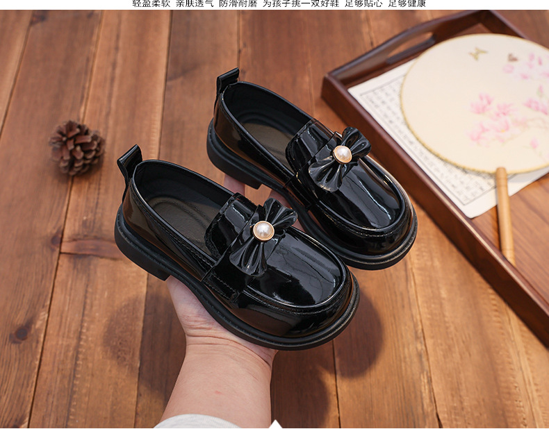 Черные кожаные туфли для девочек, детские туфли для выступлений, черно-белые студенческие туфли, торжественные школьные туфли для девочек с цветами, мягкая подошва принцессы.