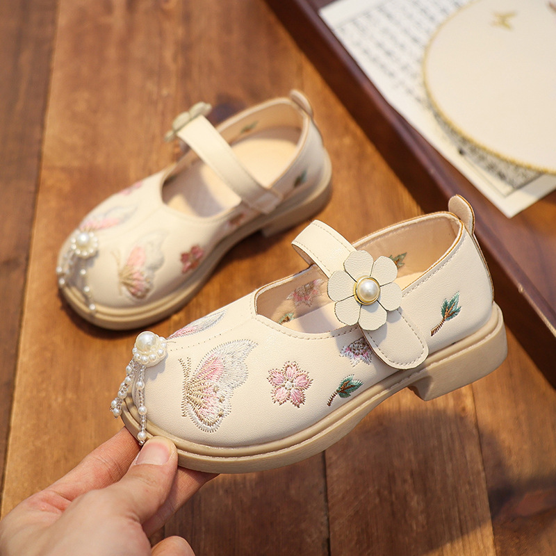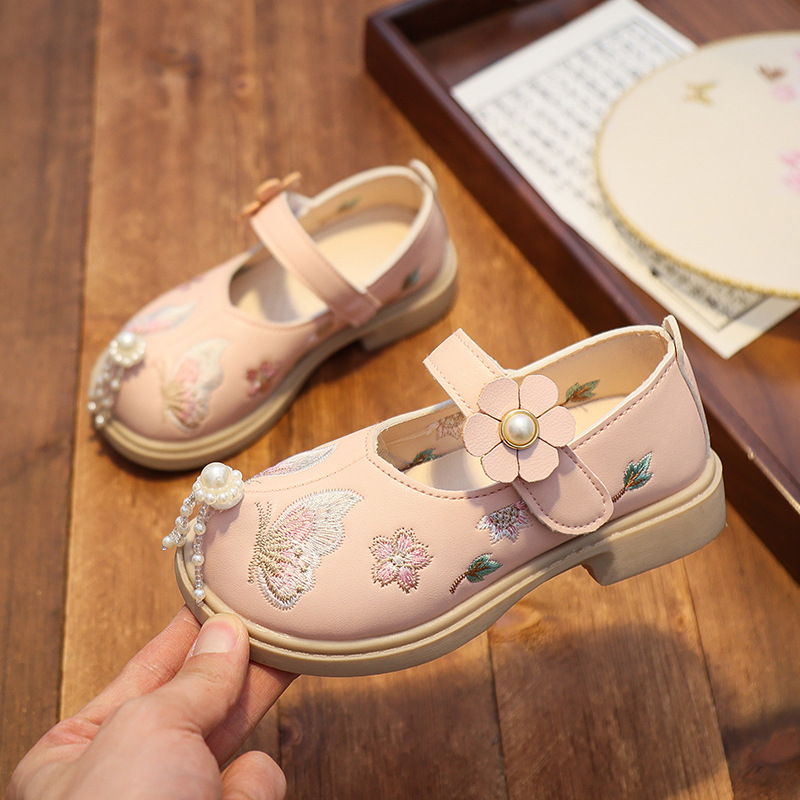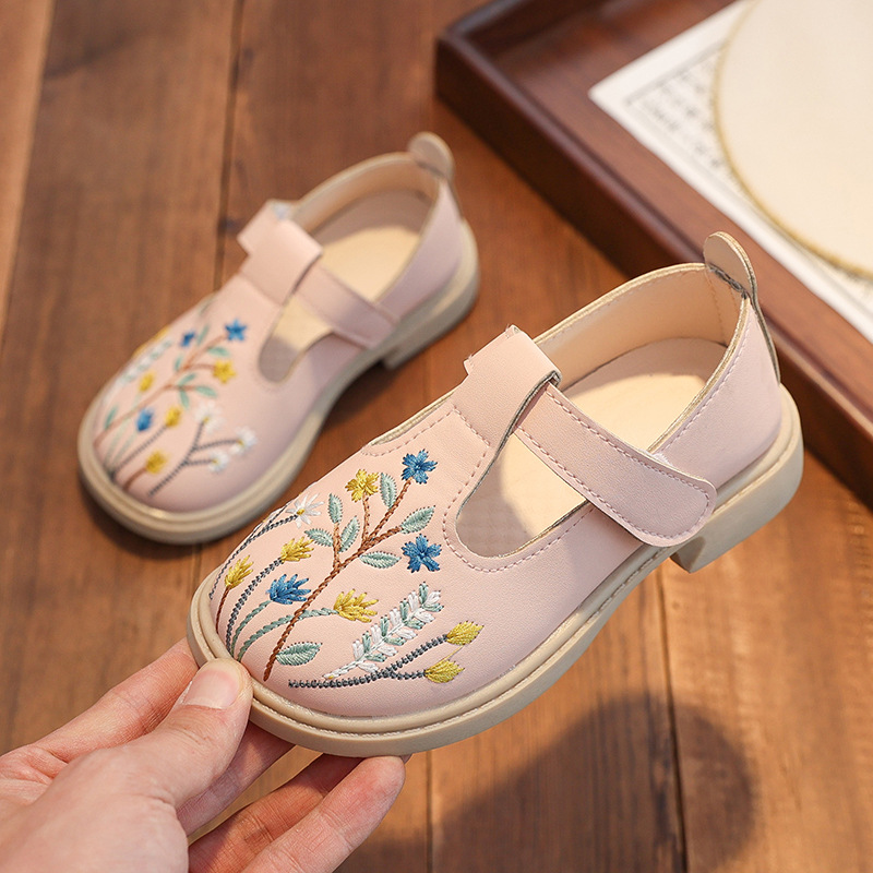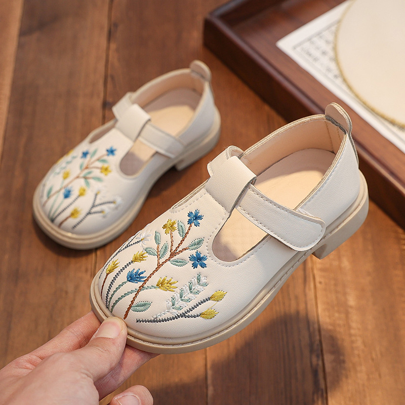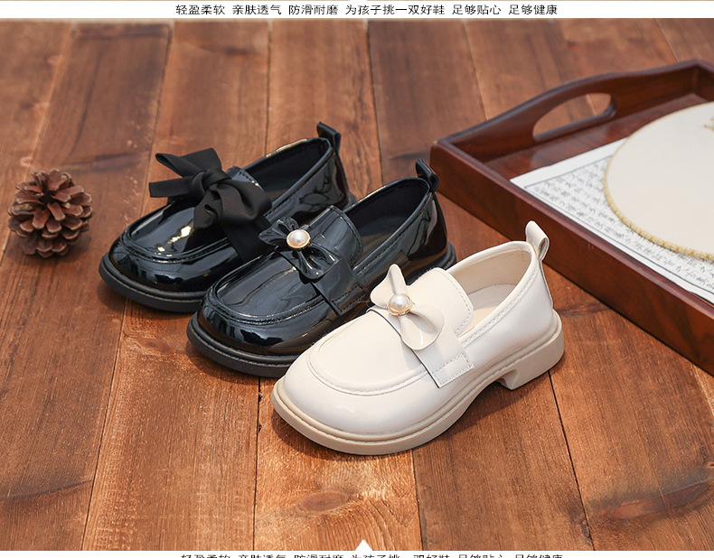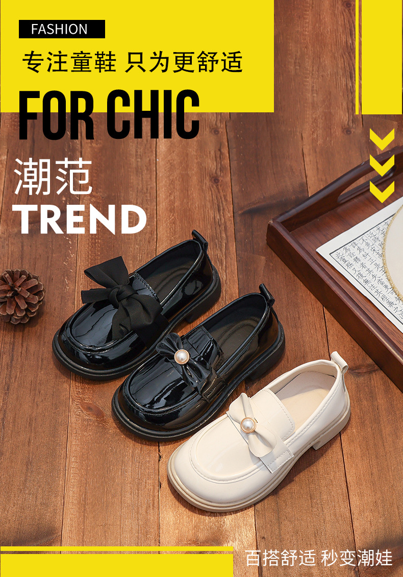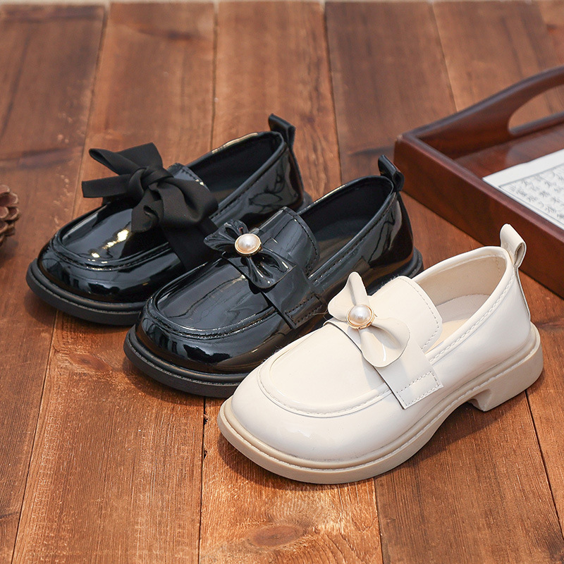Черные кожаные туфли для девочек, детские туфли для выступлений, черно-белые студенческие туфли, торжественные школьные туфли для девочек с цветами, мягкая подошва принцессы.