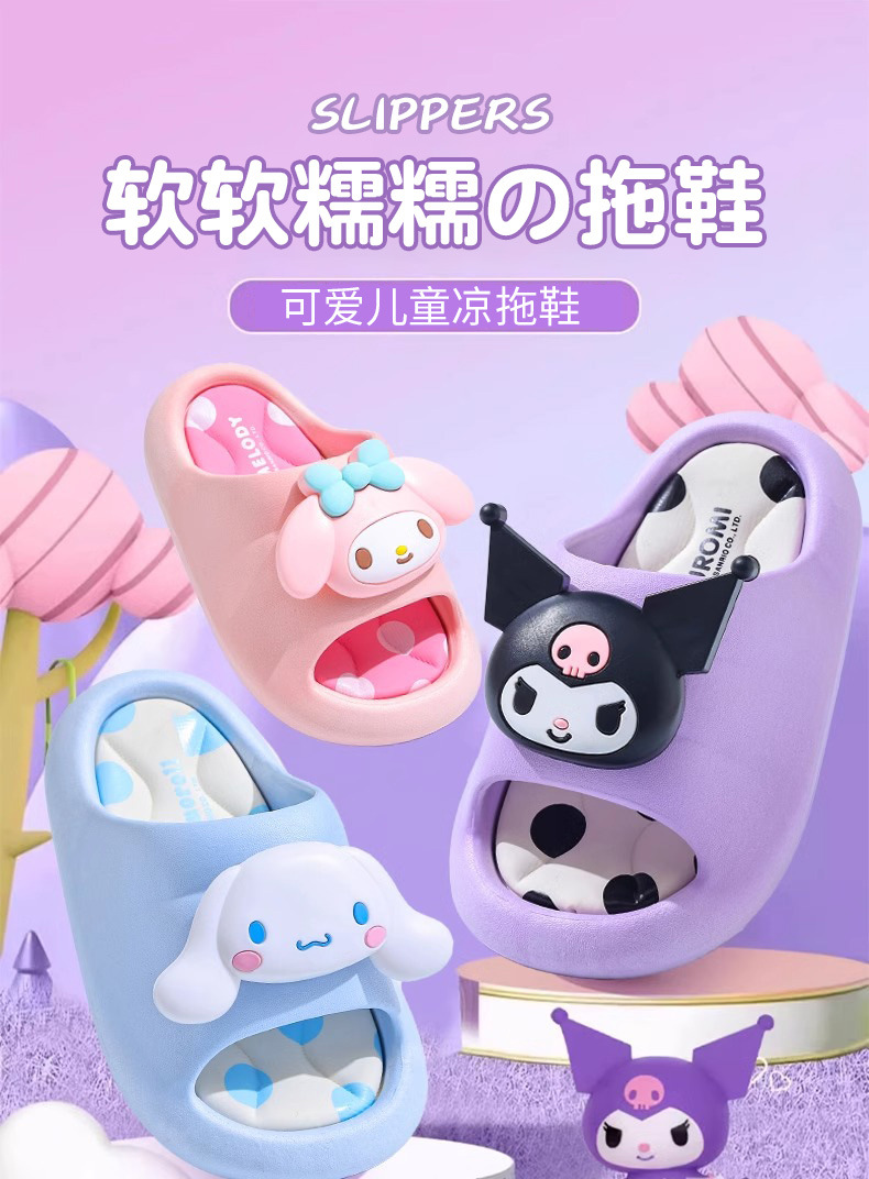Детские тапочки для девочек, летние домашние нескользящие сандалии Melody с рисунком Куроми для ванной комнаты с мягкой подошвой