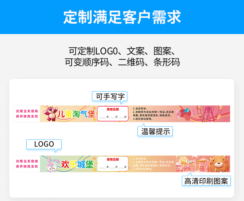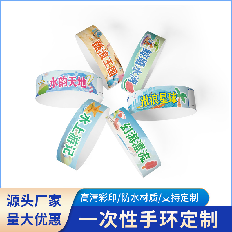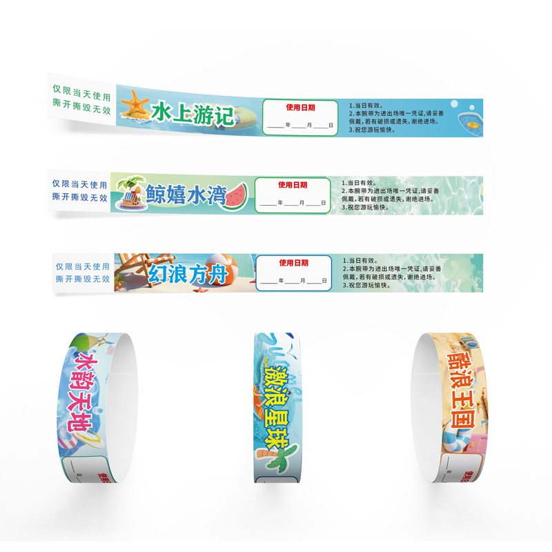 Индивидуальная детская площадка из бумаги Dupont, одноразовый браслет, идентификация, водонепроницаемая и неразрывная идентификация билета на вход