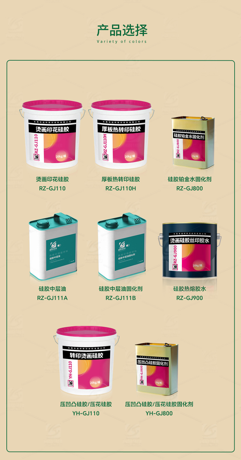 Силикон для термотрансферной печати RZ-GJ110; Теплопередающий силикон толстой пластины RZ-GJ110H; Силиконовый платиновый отвердитель для воды RZ-GJ800*10г; Силиконовое масло среднего слоя RZ-GJ111A; Силиконовый отвердитель для среднего слоя масла RZ-GJ111B*10г; Силиконовый термоплавкий клей RZ-GJ900; Силикон с тиснением/силикон с тиснением YH-GJ110; Силикон с тиснением/силиконовый отвердитель с тиснением YH-GJ800*10г
