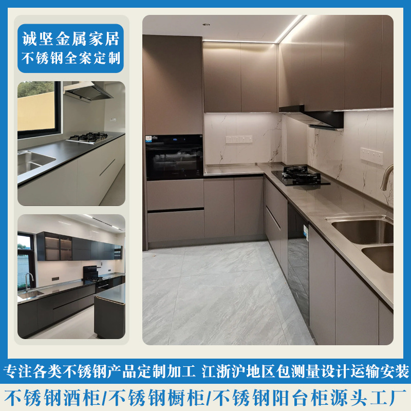 Высококачественные интегрированные шкафы из нержавеющей стали, индивидуальные проекты домашнего декора, обработка шкафов для внешней торговли, интегрированные столешницы из твердой нержавеющей стали.