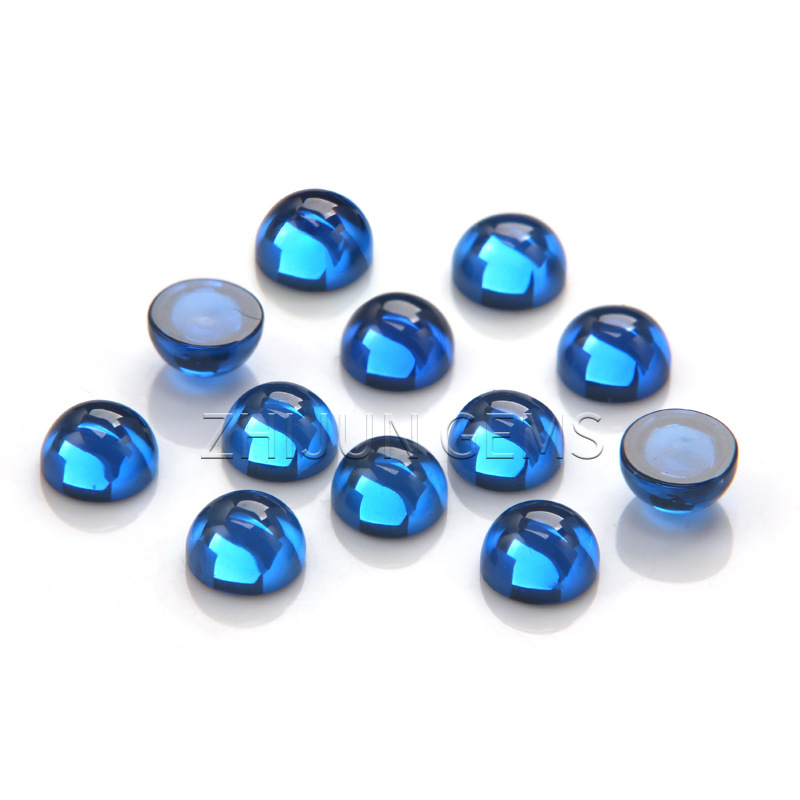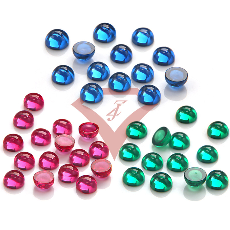 Круглые плоскодонные гладкие синтетические камни из красного корунда, синей шпинели и зеленого нано-камня, цветные плоскодонные гладкие камни оптом.