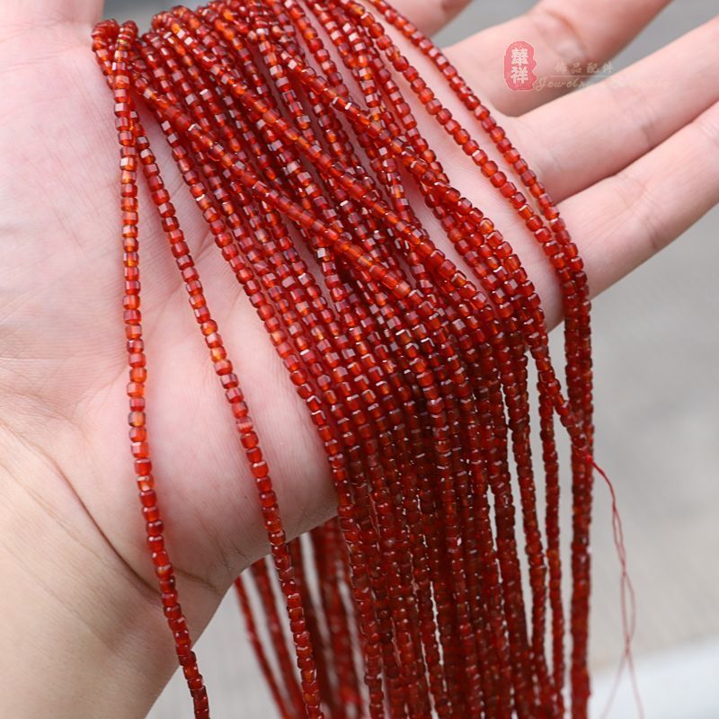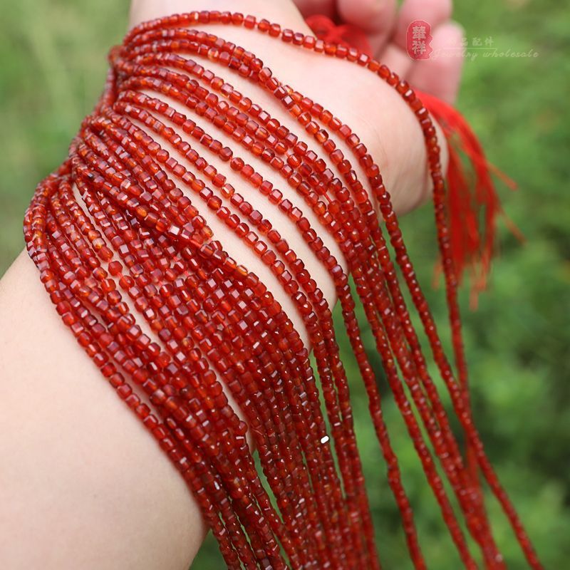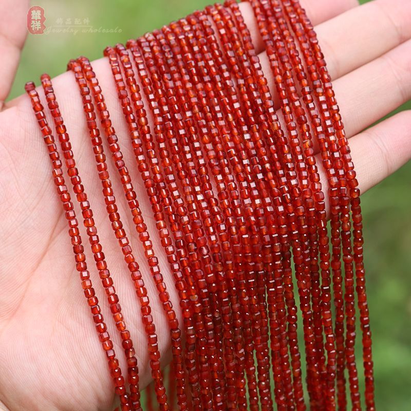 Граненая квадратная бусина из красного агата, около 2,5 мм [145 бусин в 1 нити]; Граненые квадратные бусины из светлого красного агата диаметром около 2,5 мм [1 нить]