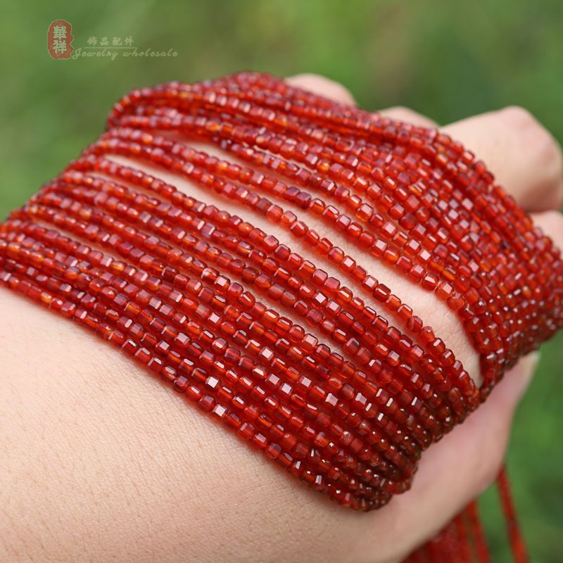 Xiaohongshu натуральный красный агат, сахарный кубик, свободные бусины 2,5, чистые красные граненые квадратные бусины, браслет-цепочка на ключицы с бусинами