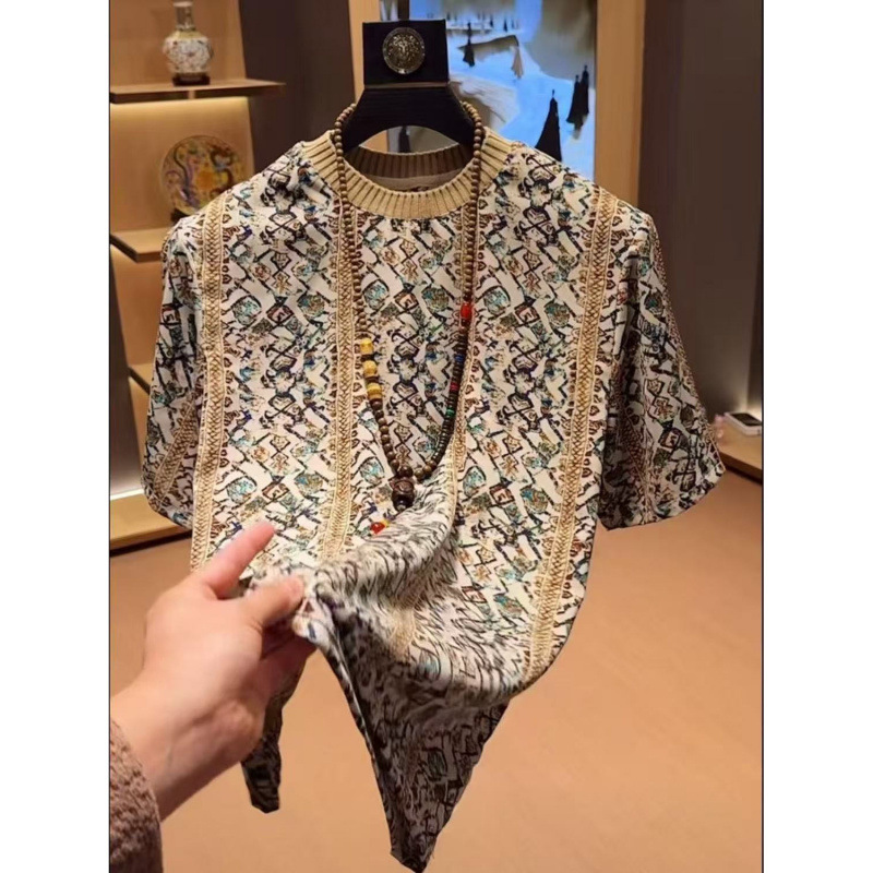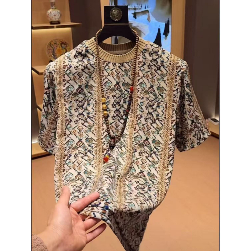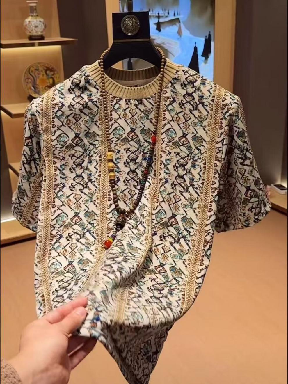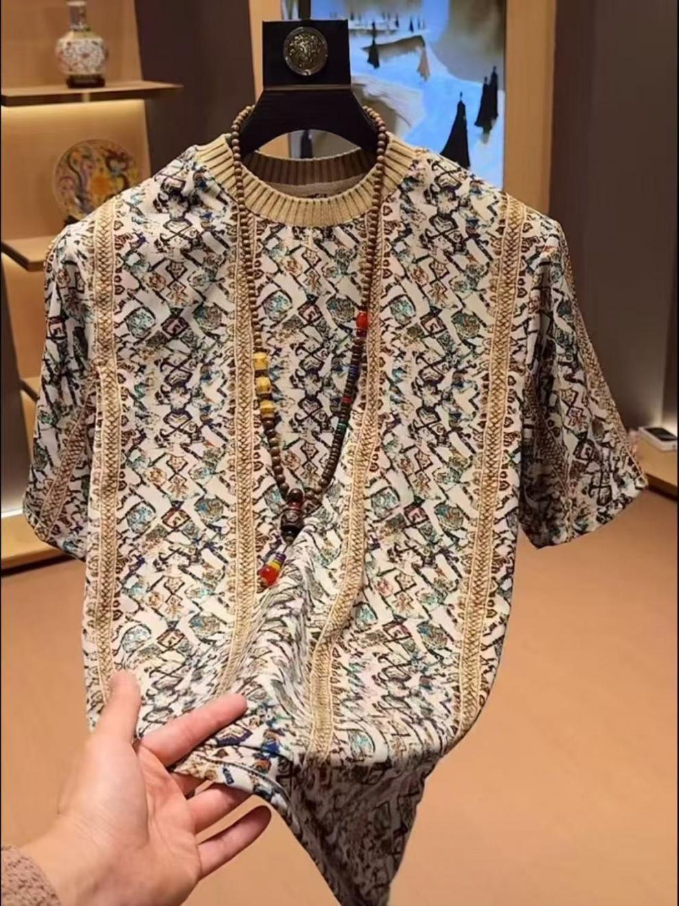Повседневная универсальная новая летняя модная мужская футболка с короткими рукавами 2025 года с круглым вырезом, красивая мужская футболка с принтом в стиле ретро, топ с половиной рукавов k
