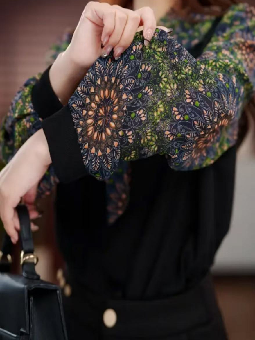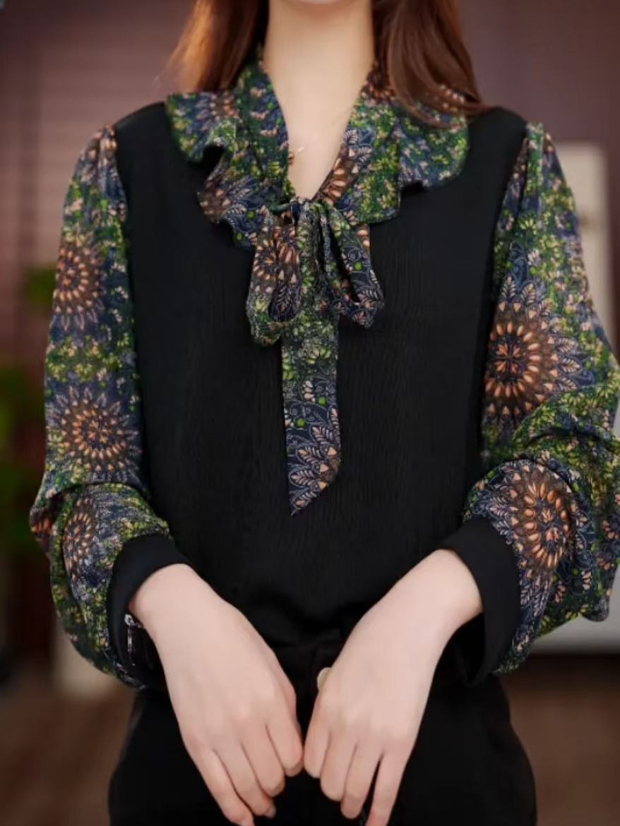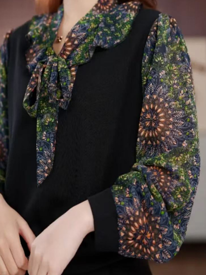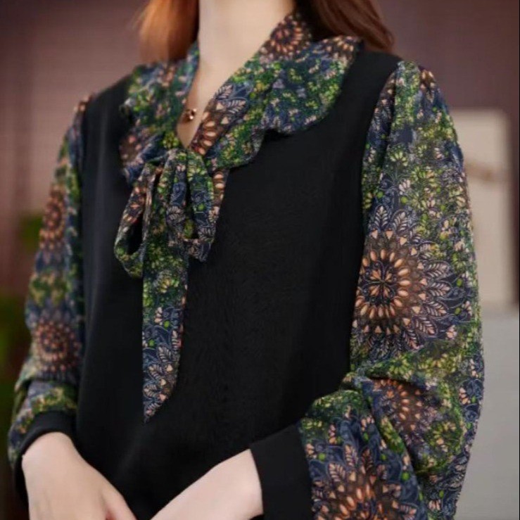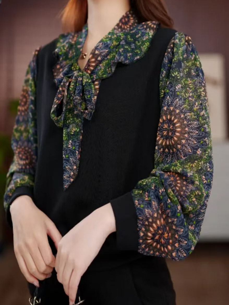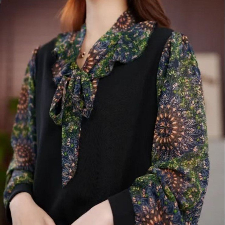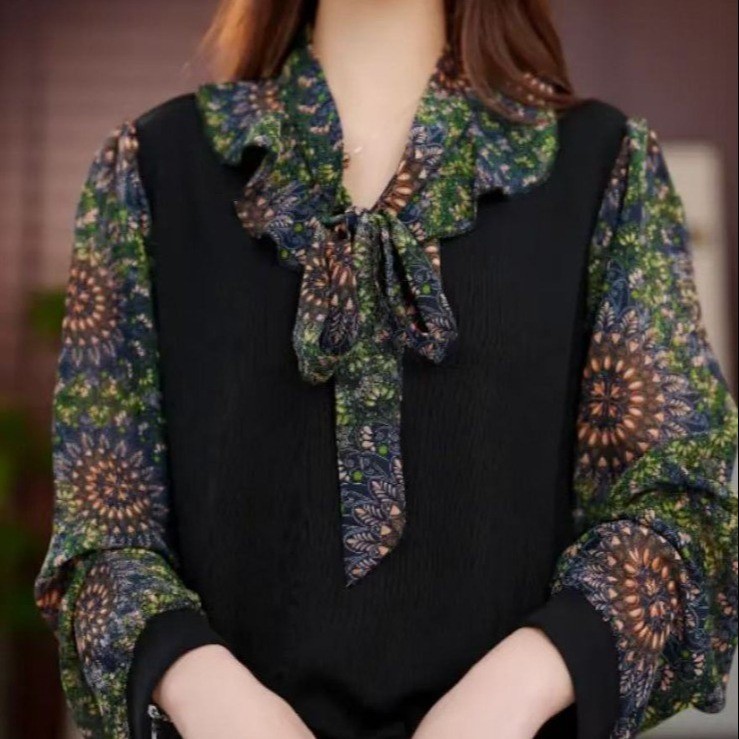 Женская шифоновая рубашка с цветочным принтом, новинка весны и лета 2025 года, популярный в этом году популярный стильный топ с бантом для похудения в западном стиле