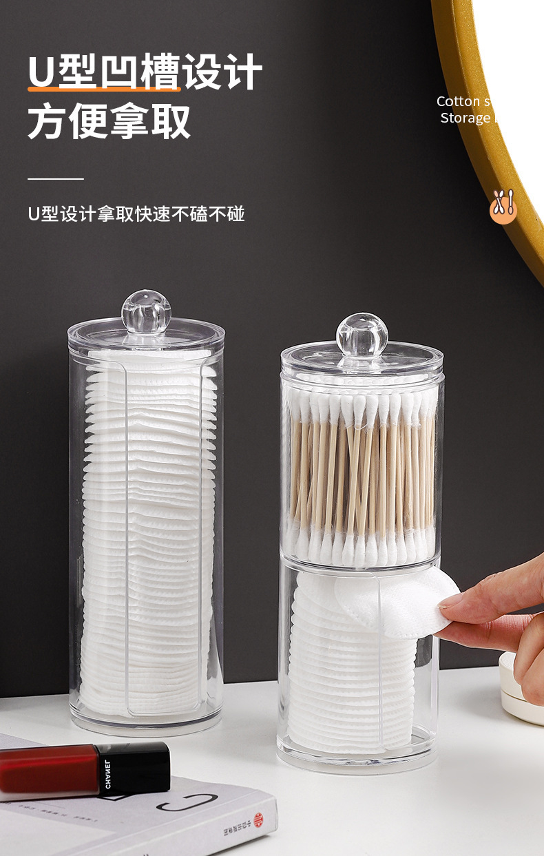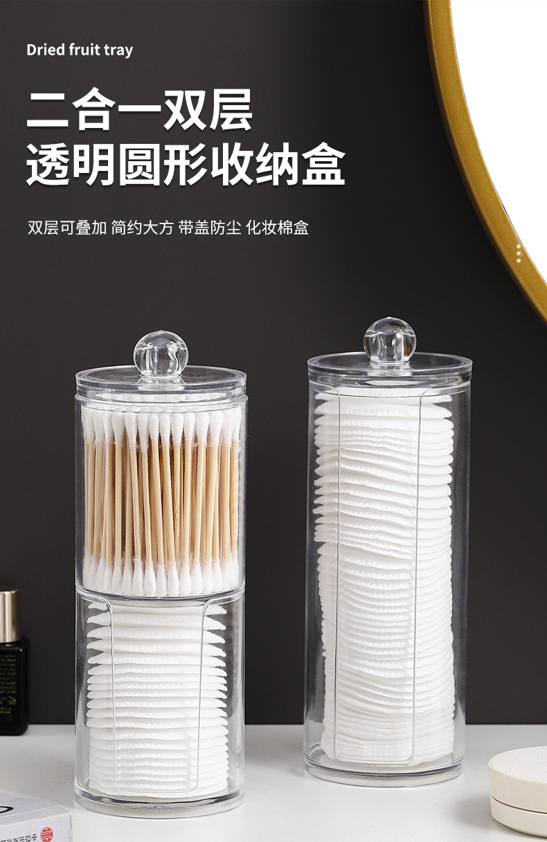 Трансграничная двухслойная круглая коробка для ватных палочек, бытовая прозрачная настольная коробка для ватных палочек для макияжа, коробка для зубочисток, тюбик для снятия макияжа, хлопковая коробка для хранения