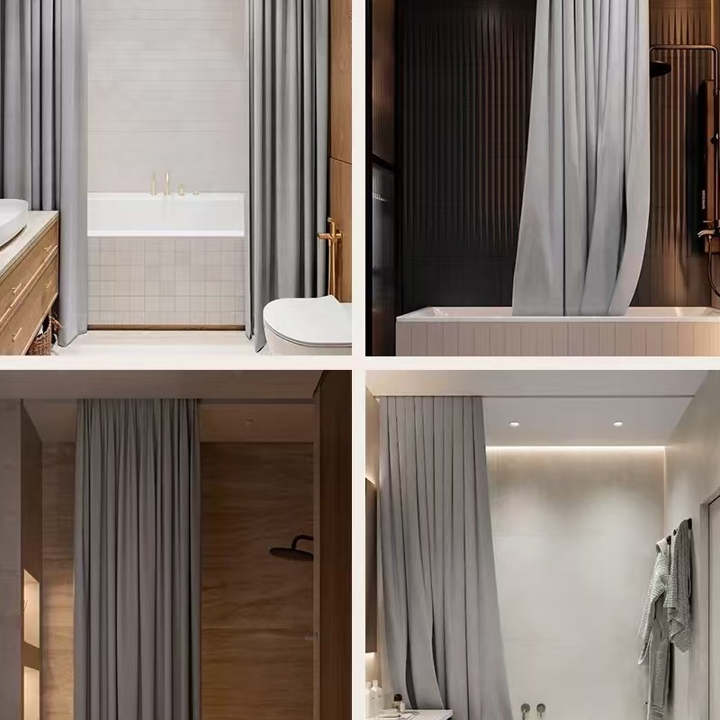 Трансграничная рельсовая занавеска для душа, русская льняная занавеска для душа, домашняя ванная комната, ванная комната, водонепроницаемая перегородка, дверная занавеска