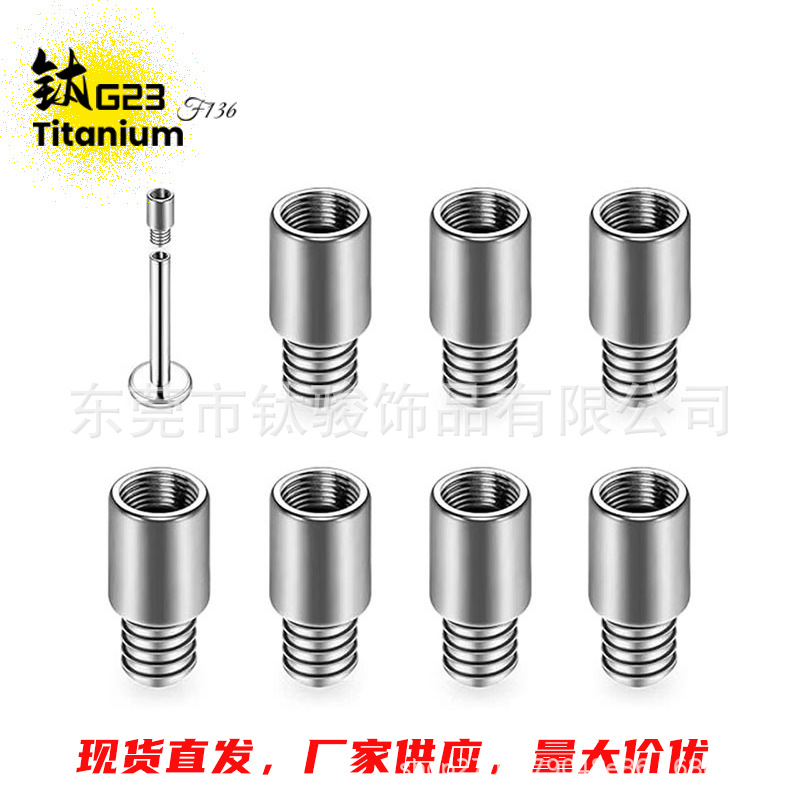 F136 титановый сплав, удлинитель с внутренней и внешней резьбой, 14G 16G, соединительный стержень для пирсинга, G23, удлинитель для сережек из титана