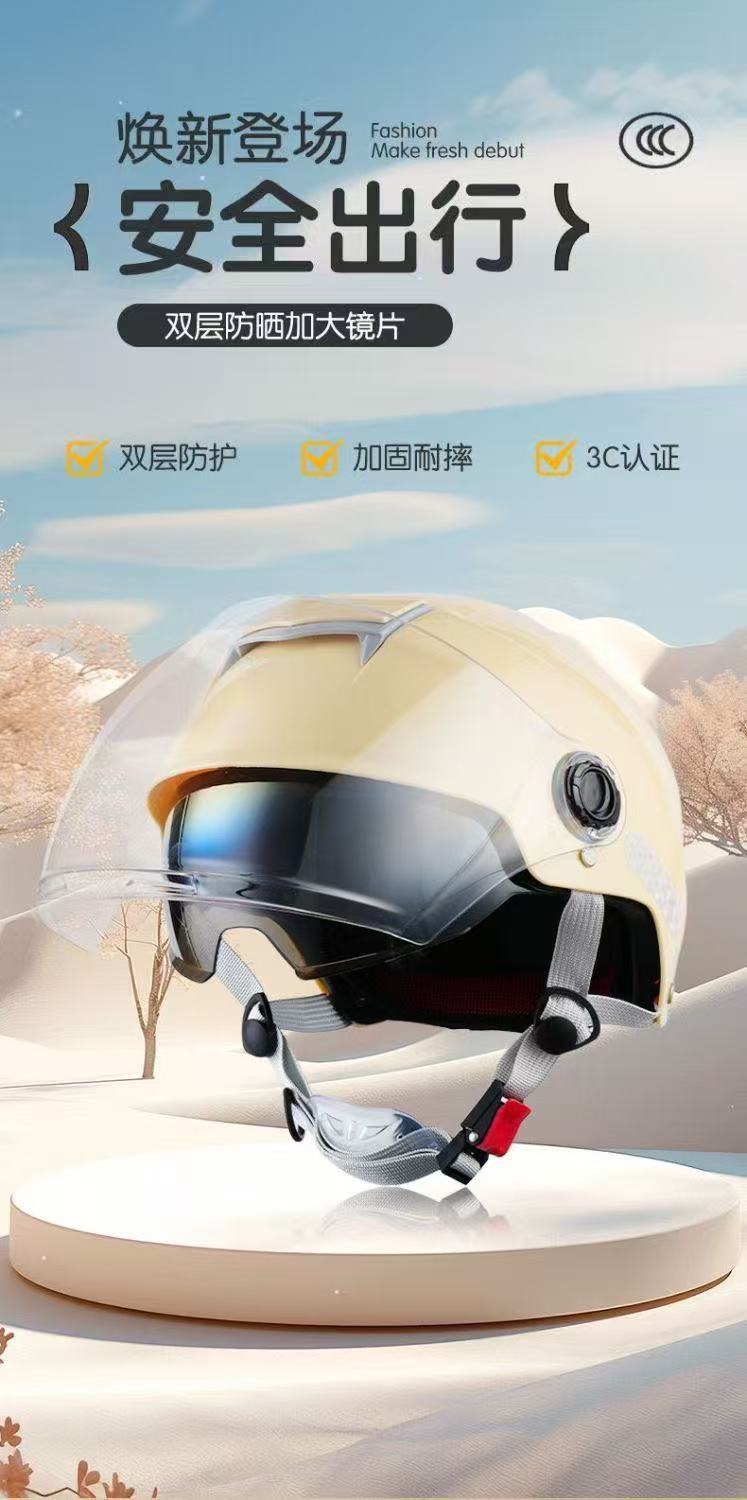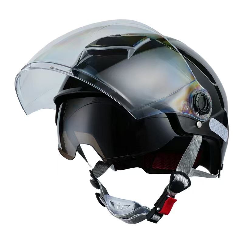 Сертифицированный по национальному стандарту летний солнцезащитный электромобиль, мужской и женский шлем с двумя линзами, четырехсезонный универсальный мотоциклетный шлем с аккумулятором