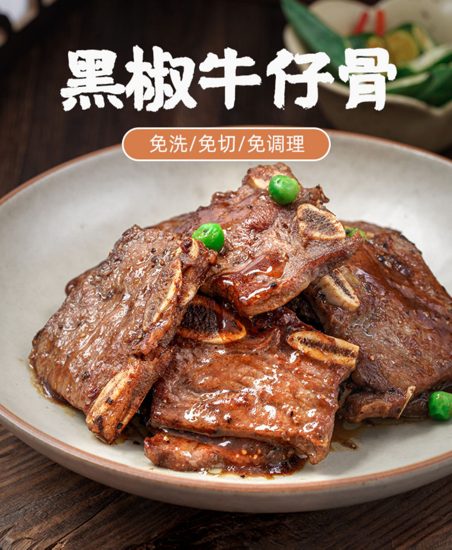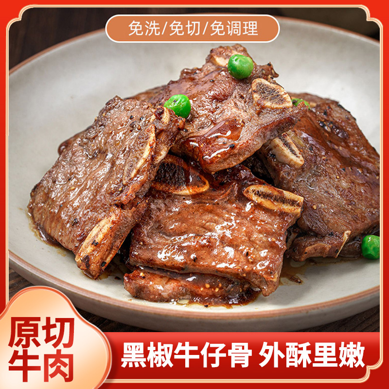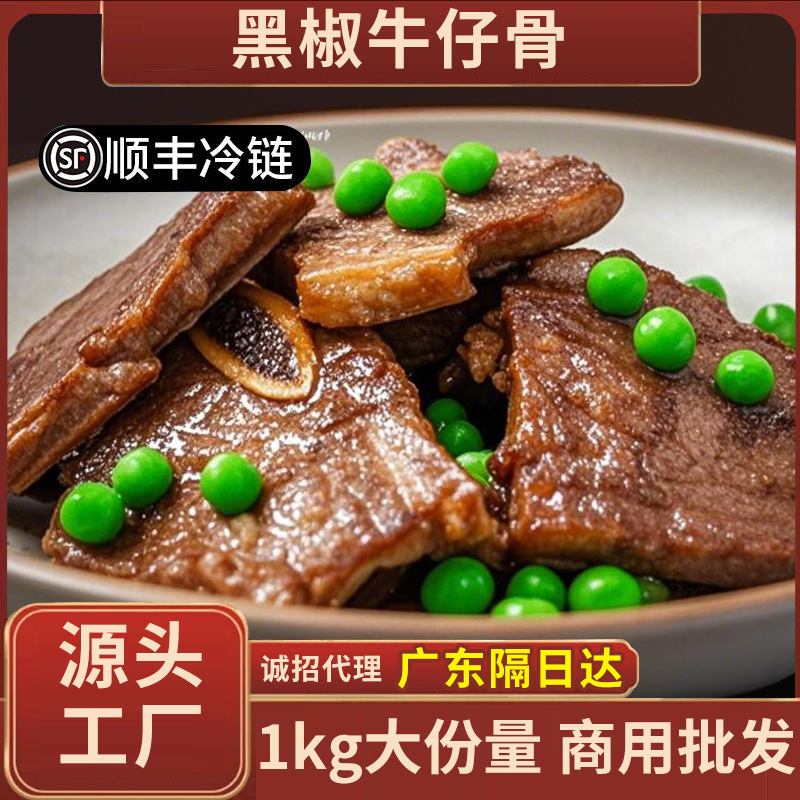Ребрышки говяжьи с черным перцем 1 кг, замороженные, не нарезанные, для завтрака, полуфабрикаты для коммерческого использования в чайных домах, оптом