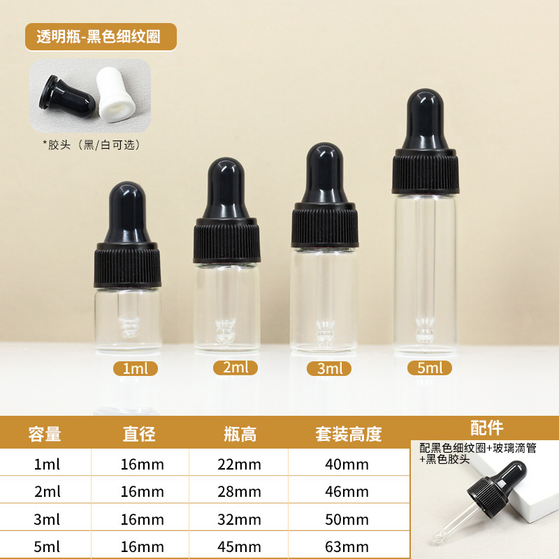 Флакон-капельница для эфирных масел, коричневый, 1 мл, 2 мл, 3 мл, 4 мл, 5 мл, пробник, упаковка, стеклянный флакон-трубка