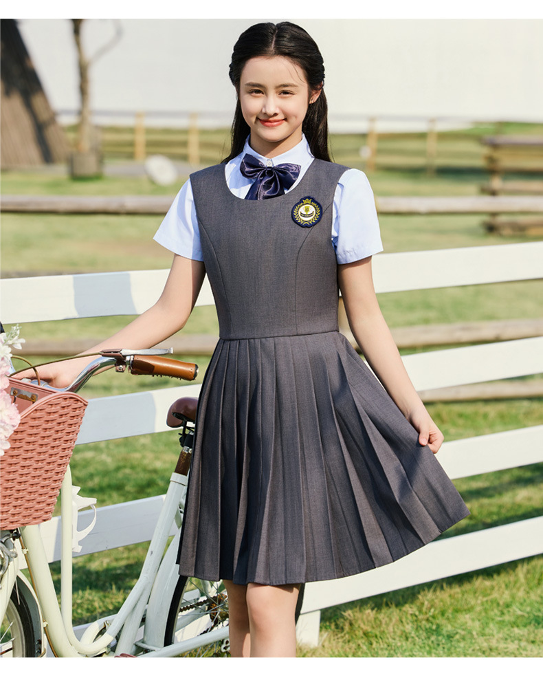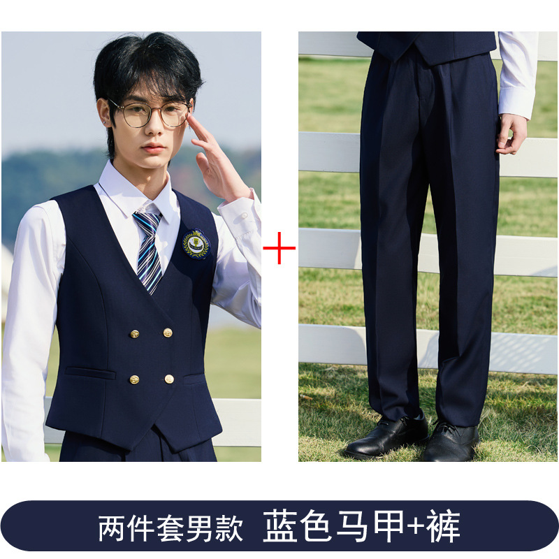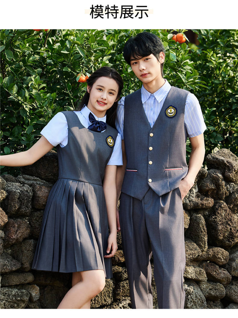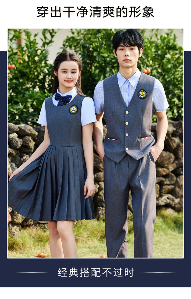 серая юбка; синяя юбка; Серая юбка + синяя рубашка с длинными рукавами.; Синяя юбка + белая рубашка; Серая юбка + белая рубашка с короткими рукавами.; Синяя юбка + белая рубашка с короткими рукавами.; Мужчина = синий жилет + синие брюки.; Мужчина = серый жилет + серые брюки.