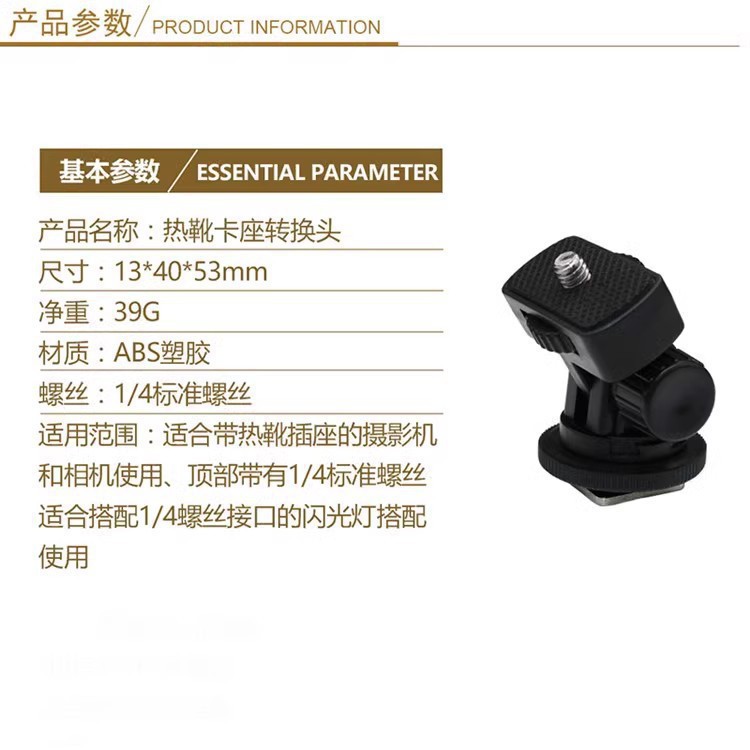 产品名称:热靴卡座转换头 F云台 摄影转换头 热靴云台