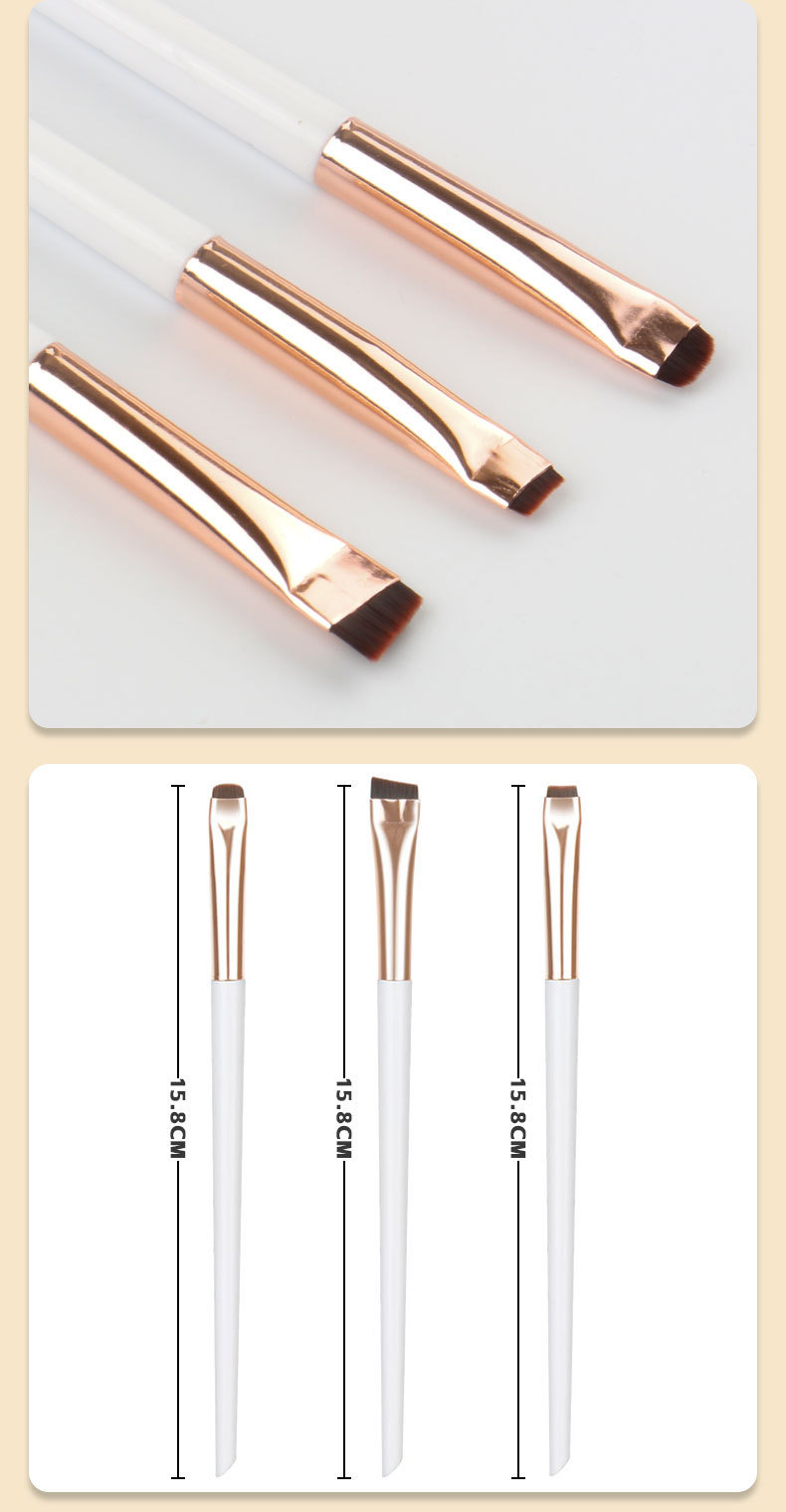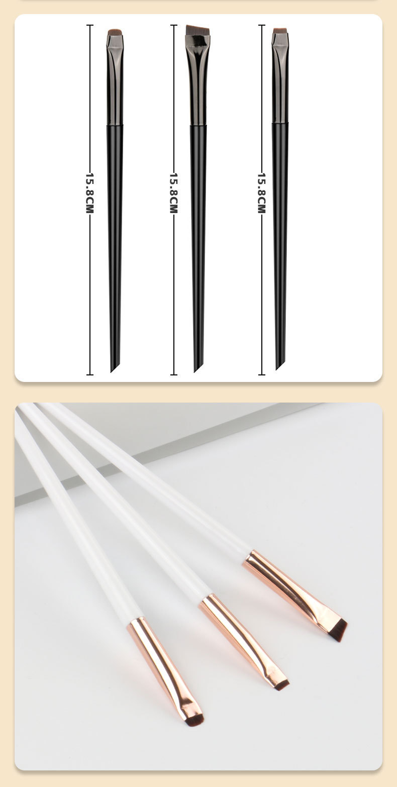 Набор из 3 кистей для макияжа: кисть для подводки глаз, кисть для бровей с угловым наклоном, кисть для контурной подводки глаз, ультратонкая кисть для бровей, кисть для окрашивания и формирования бровей.