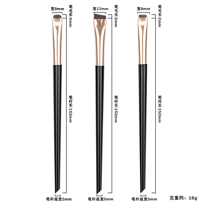 Набор из трех кистей для подводки глаз с черным лезвием; Платиновая подводка для глаз, набор из трех штук; Набор из трех кистей для подводки глаз с лезвиями черного золота