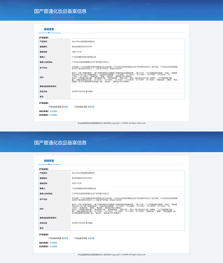 Гуандун G, регистрационный номер сети макияжа: 2024433776