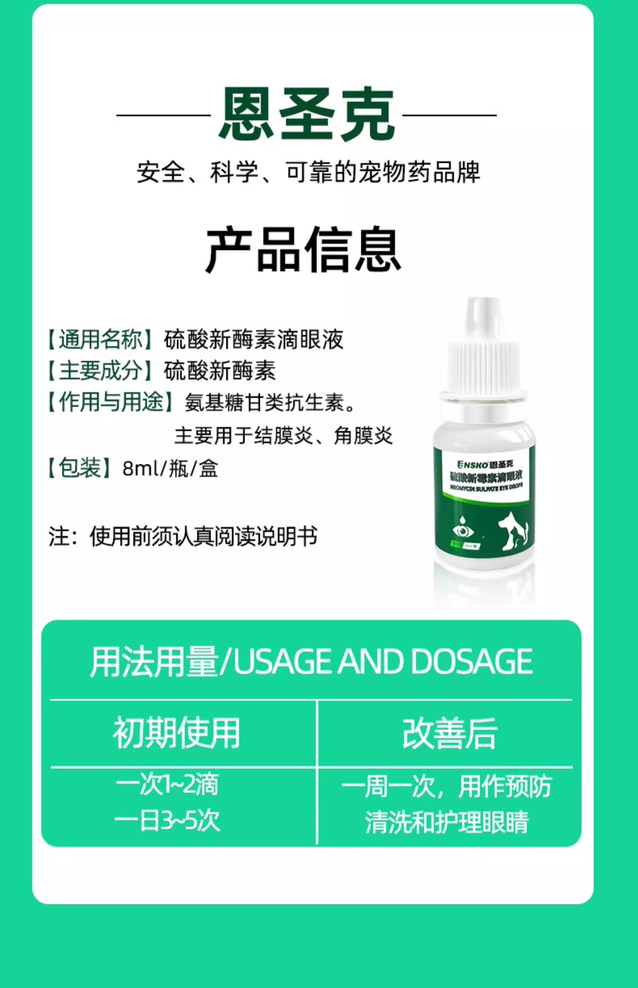 Глазные капли сульфата неомицина глазные капли Ensengke Cat Dog