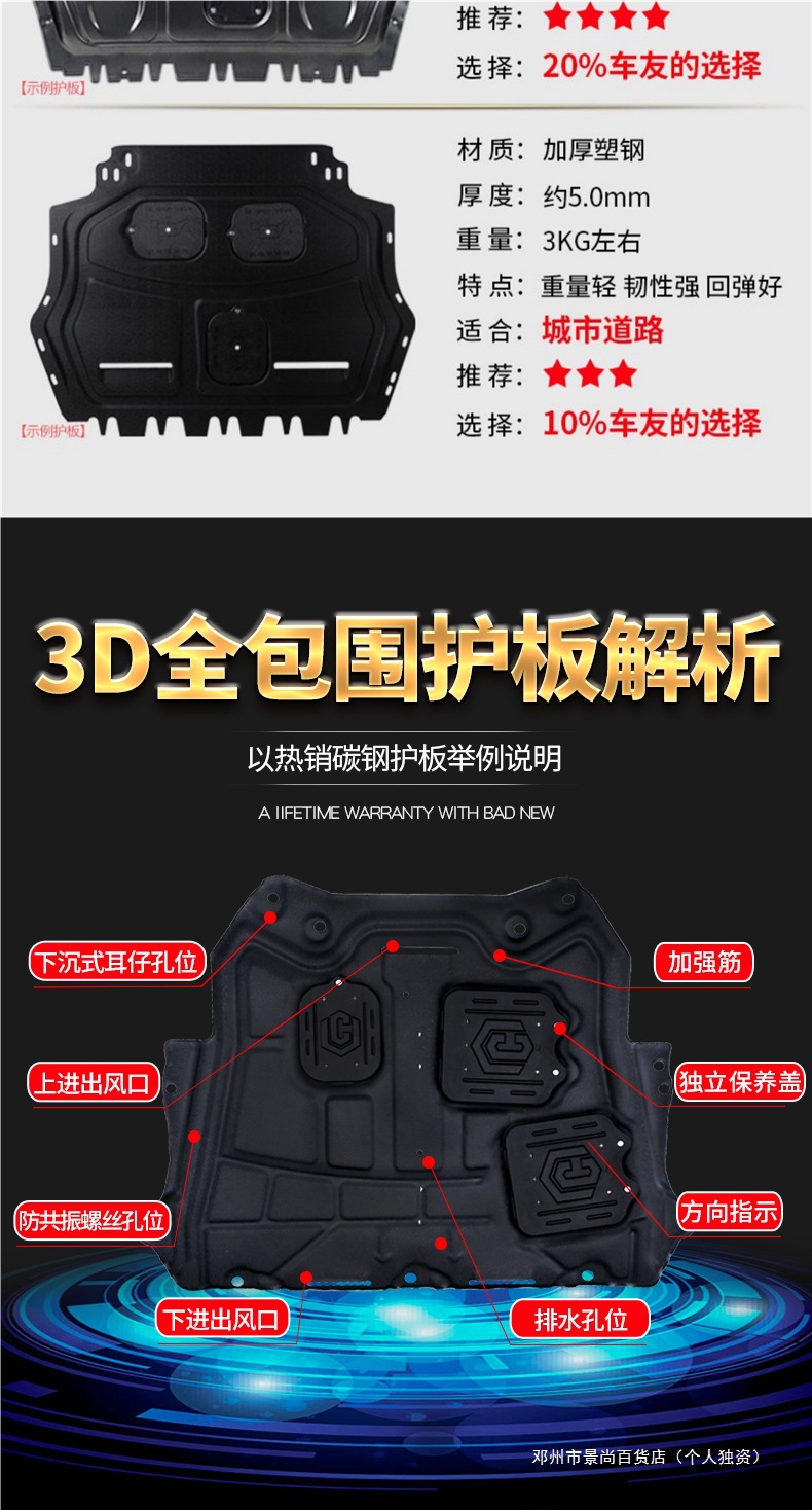 [3D пластиковая стальная защита двигателя]; [3D защита двигателя из марганцевой стали]; [3D утолщенная защита двигателя из углеродистой стали]; [3D защита двигателя из алюминиево-магниевого сплава]