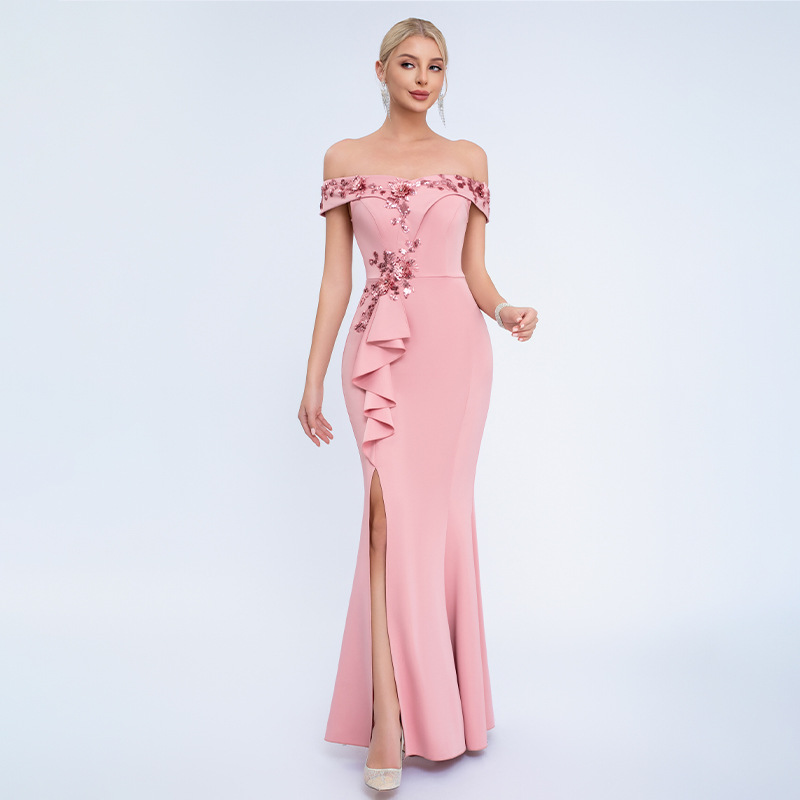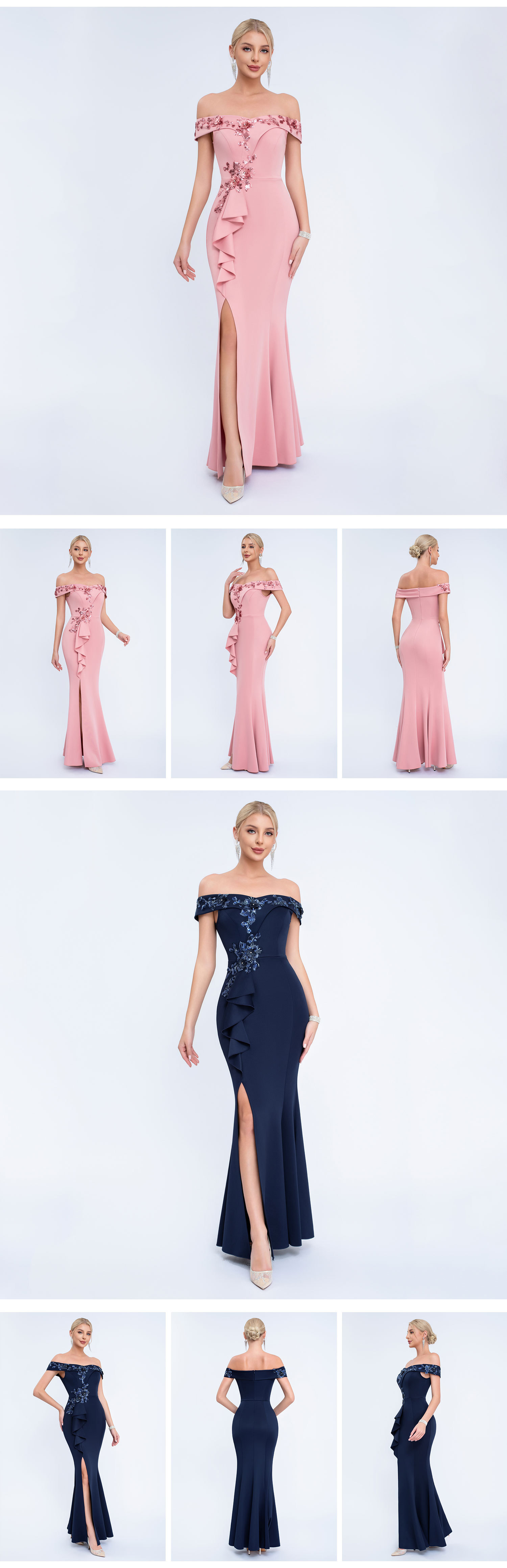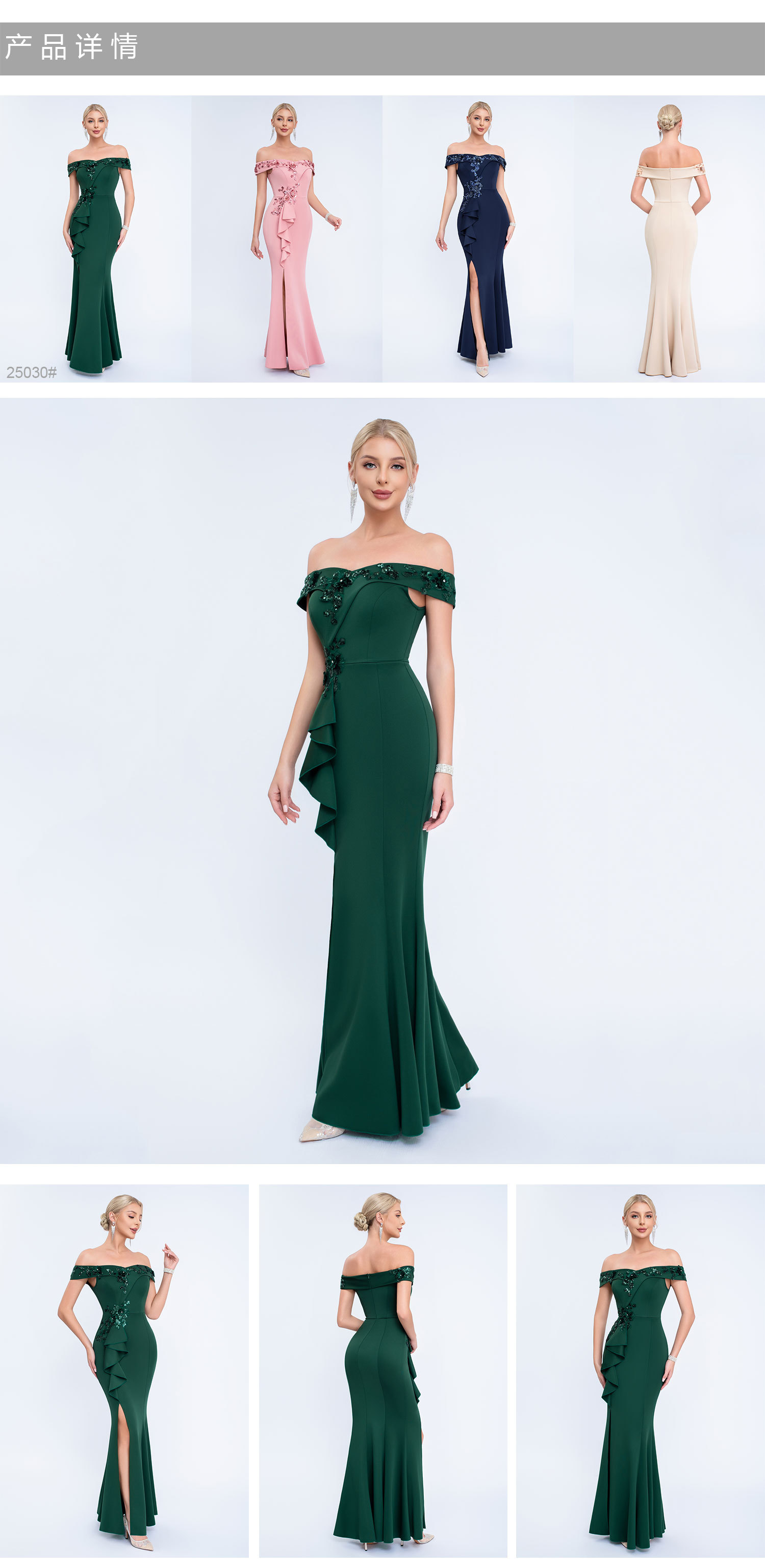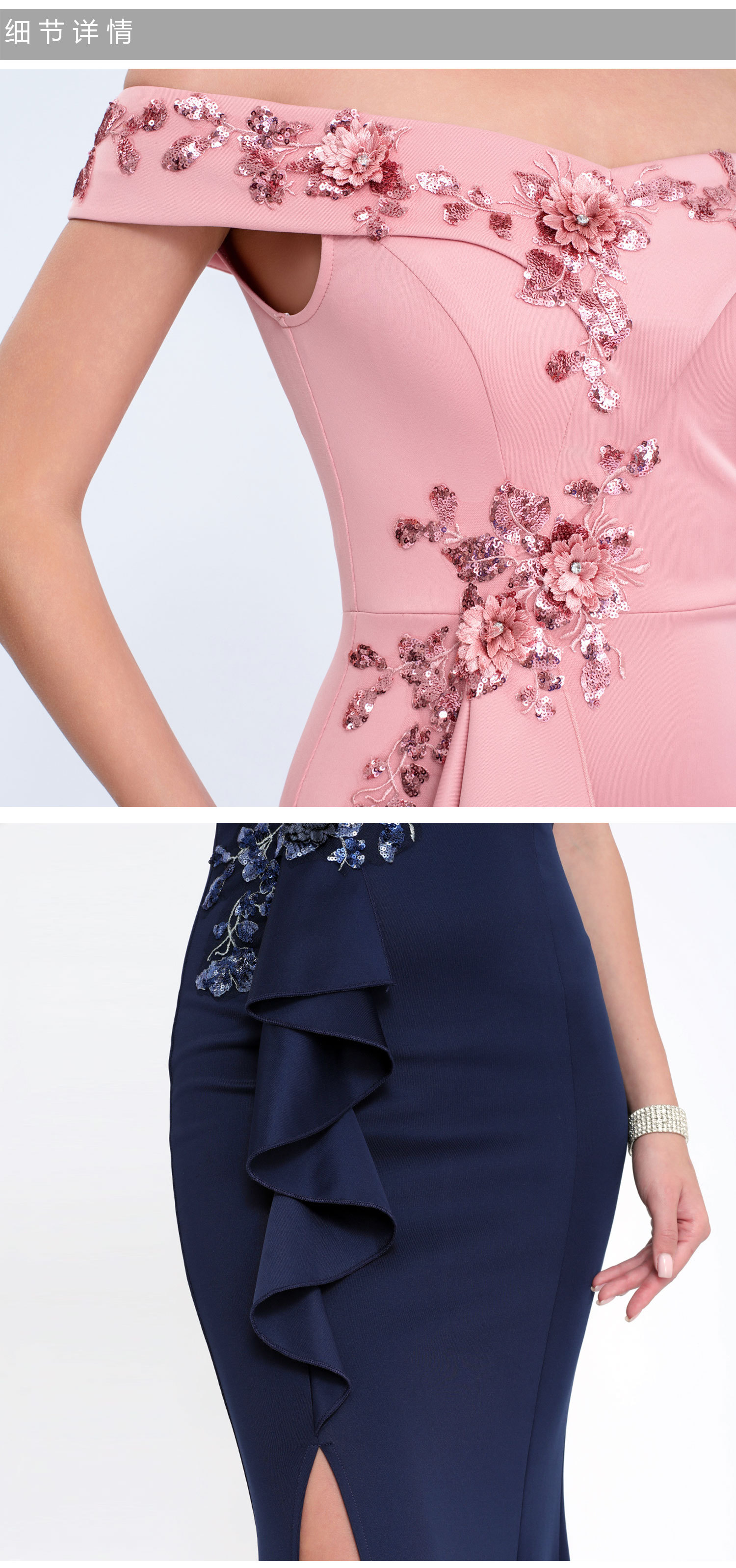 外贸跨境3D立体玫瑰花刺绣网纱亮片名媛气质长裙连衣裙宴会晚礼服款号:25030#