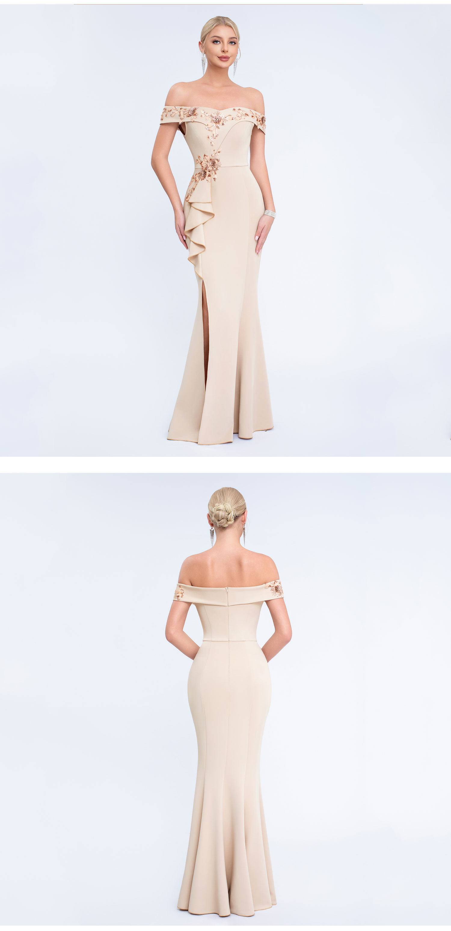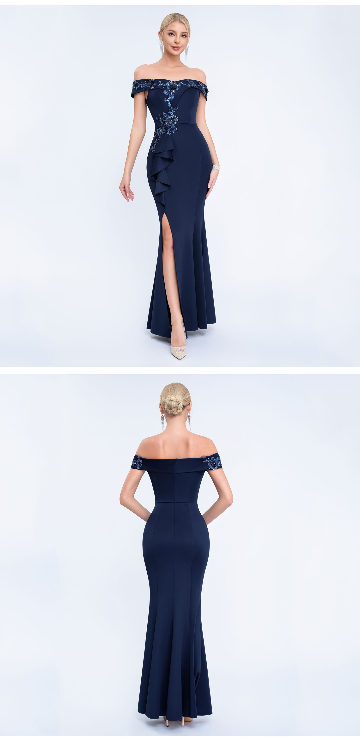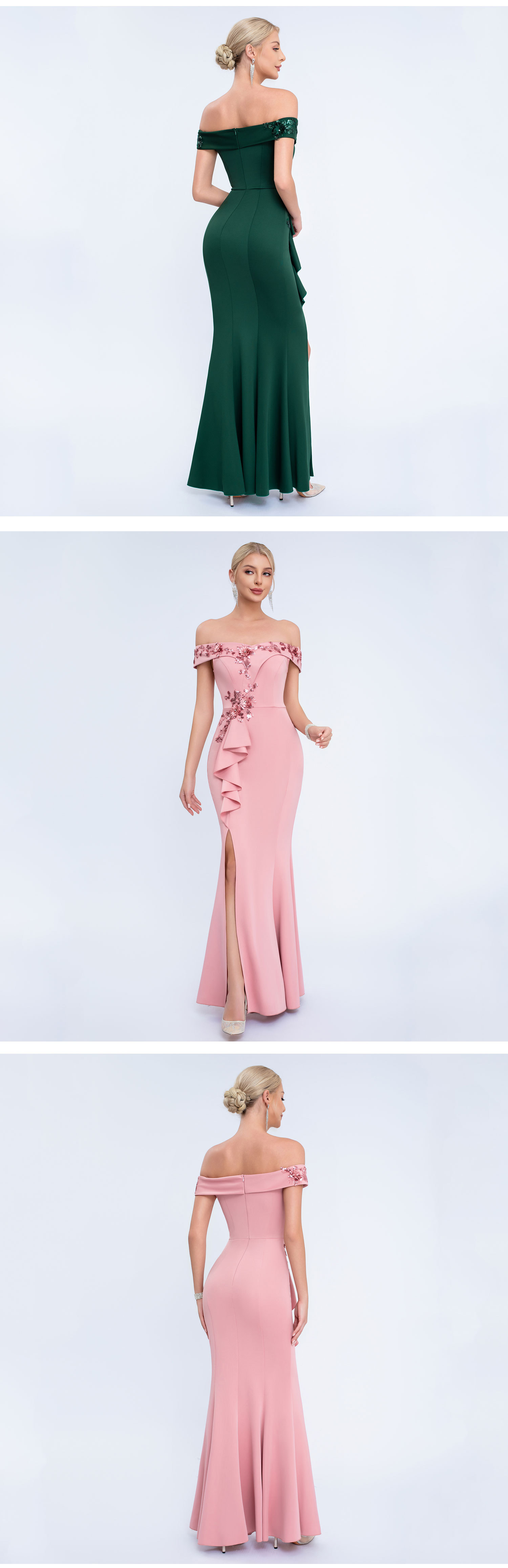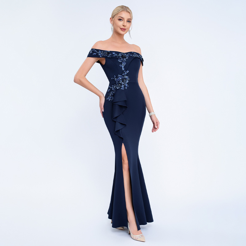 外贸跨境3D立体玫瑰花刺绣网纱亮片名媛气质长裙连衣裙宴会晚礼服款号:25030#