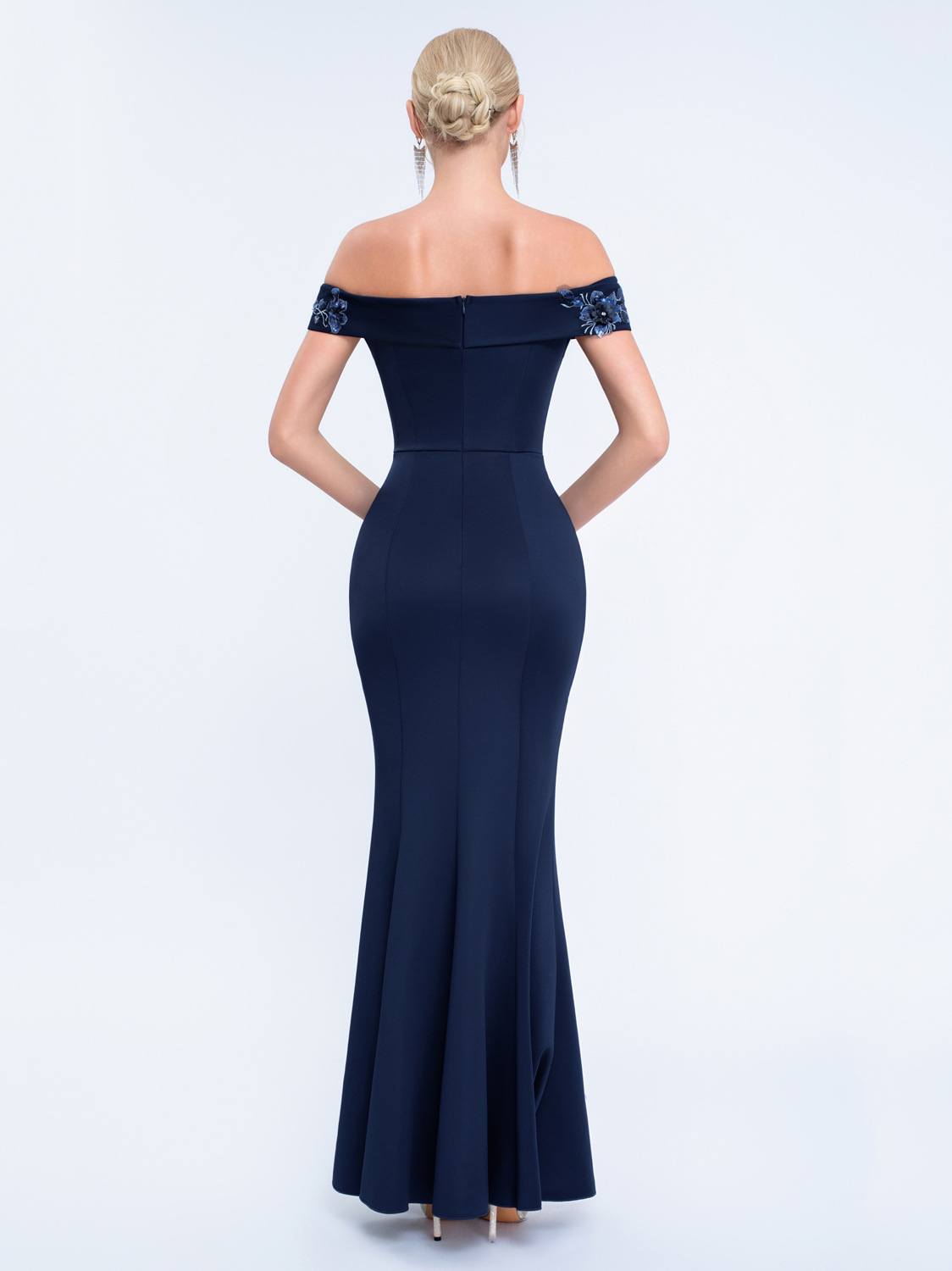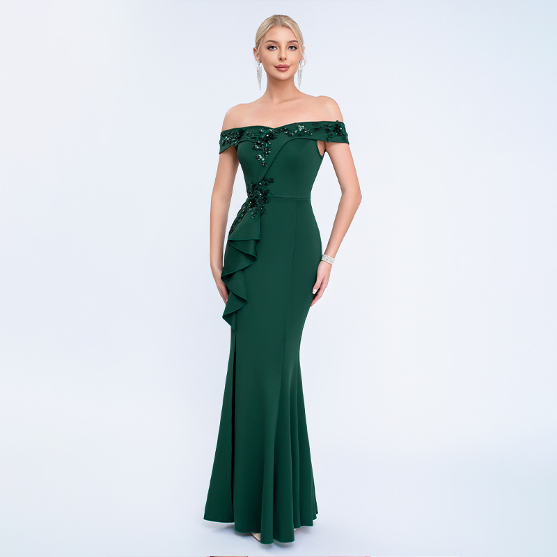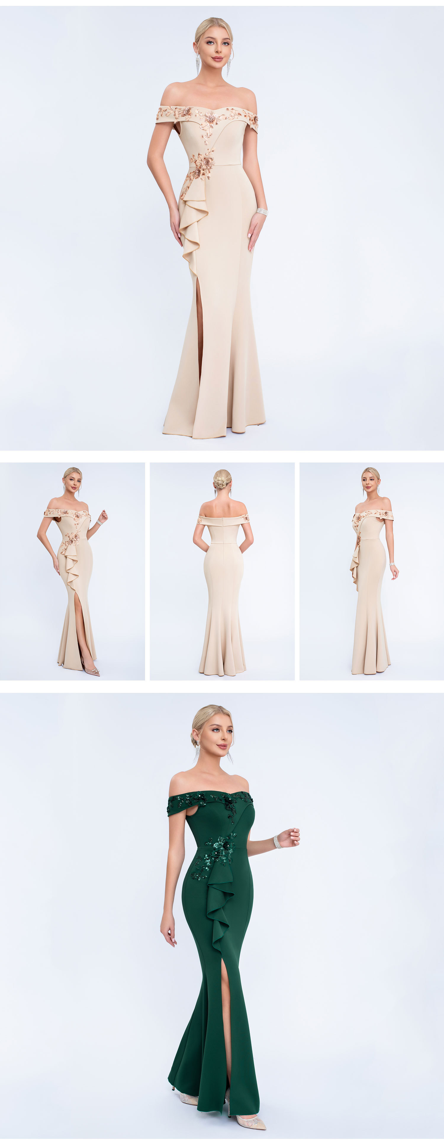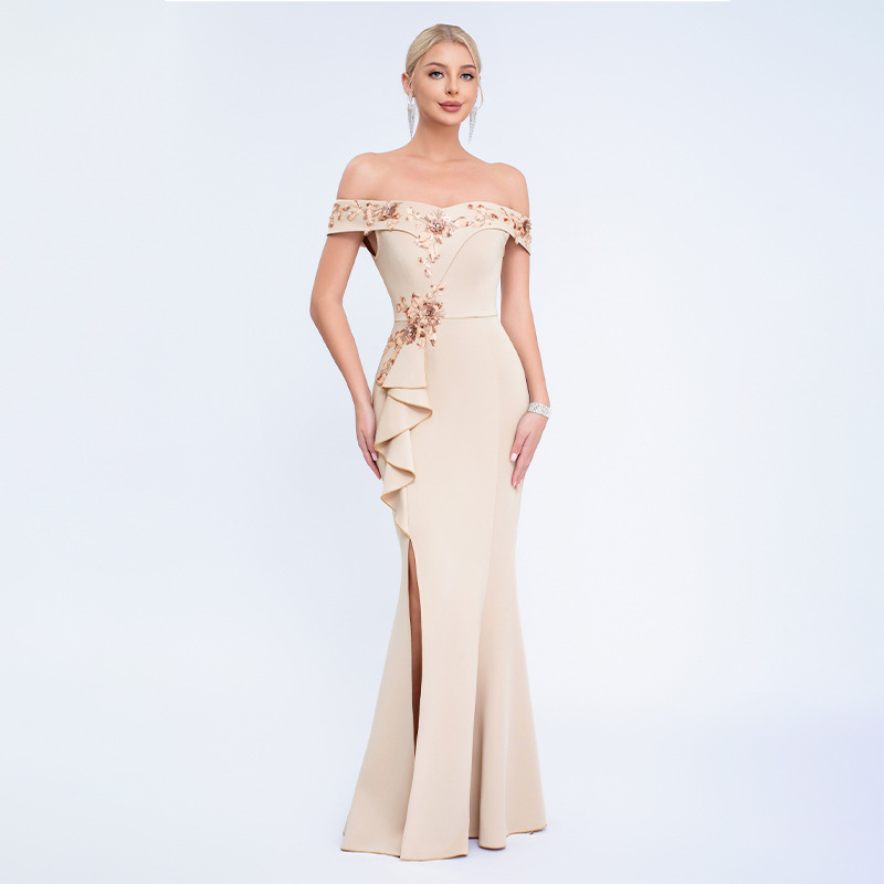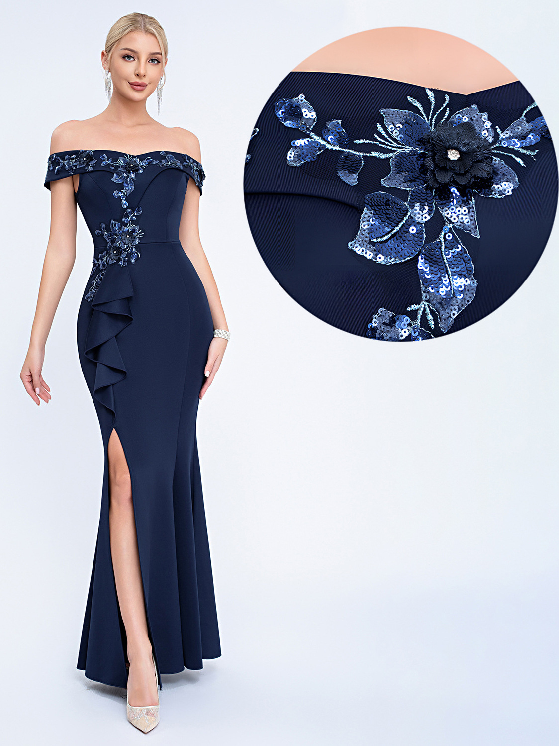 外贸跨境3D立体玫瑰花刺绣网纱亮片名媛气质长裙连衣裙宴会晚礼服款号:25030#