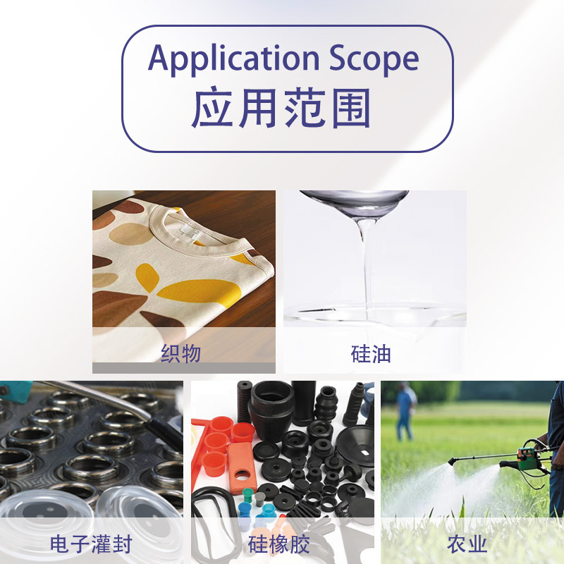 Силиконовое масло, силиконовая резина, ткани, медицинская промышленность.
