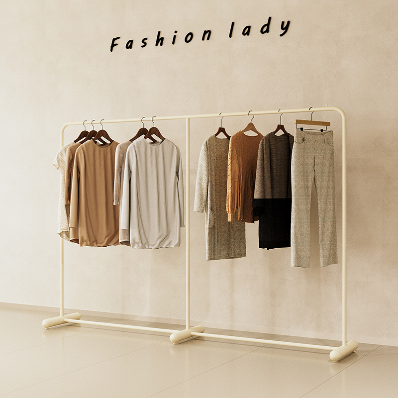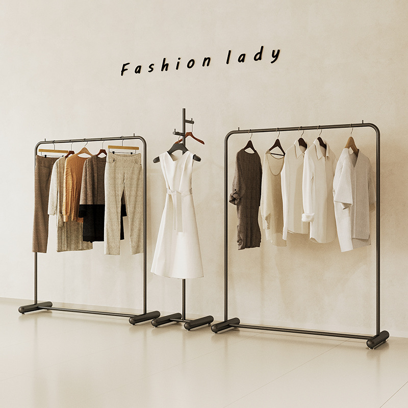 Полки для магазинов одежды, простые железные черные напольные вешалки для одежды, стеллажи для демонстрации детской одежды, молочно-белые стеллажи для магазинов женской одежды